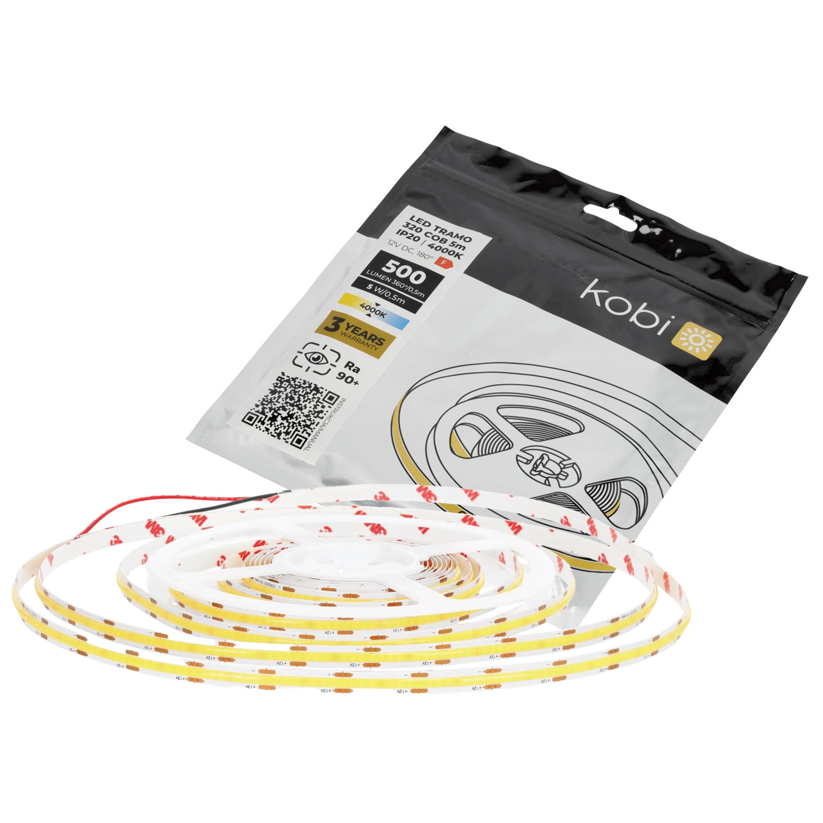 LED pásek Tramo Premium od společnosti Kobi je ideálním řešením pro ty, kteří hledají účinné a energeticky úsporné osvětlení interiérů. Tento LED pásek se jmenovitým příkonem 5 W a působivým světelným tokem 500 lm poskytuje jasné a příjemné světlo s neutrální barevnou teplotou 4000 K. Je ideální volbou jak pro osvětlení pracovních prostor, tak pro vytvoření útulné atmosféry v domácím interiéru.