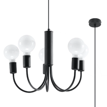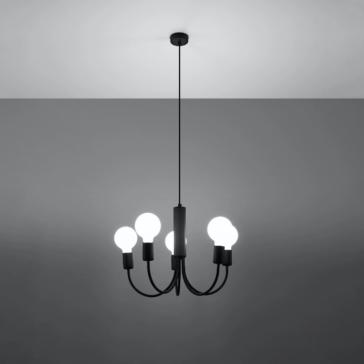 Moderní závěsné stropní svítidlo Piccolo od společnosti Sollux s nepravidelným designem dodá sofistikovaný styl každému interiéru. Je vyrobeno s důrazem na detail a obsahuje pět otvorů pro žárovky E27, které umožňují dokonalé osvětlení prostoru. Jeho černé barevné provedení a moderní tvar se skvěle hodí do různých prostředí, od minimalistických až po industriální.
