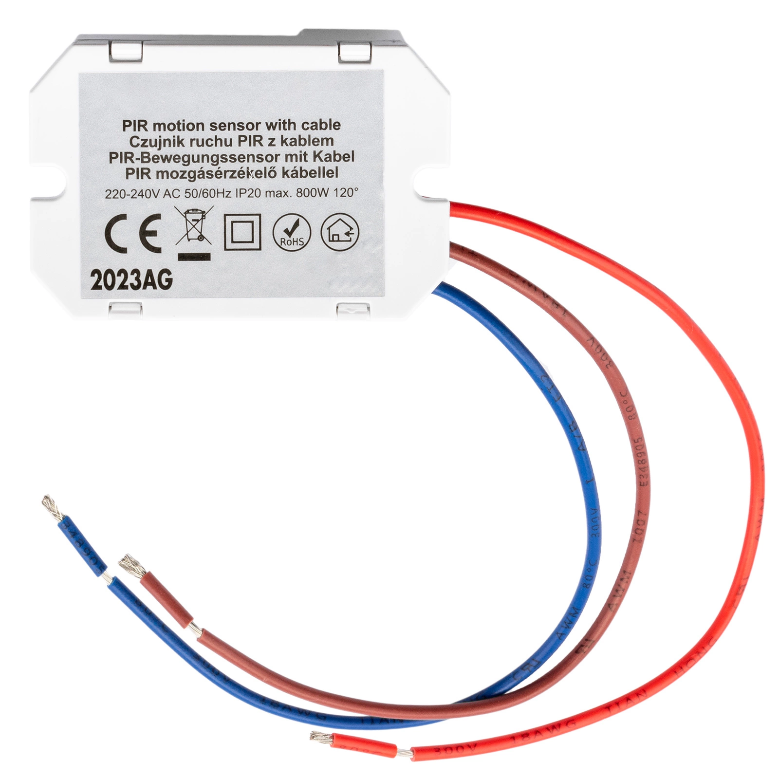 Pohybové čidlo PIR s kabelem je vysoce kvalitní výrobek, jehož hlavní předností je automatické ovládání světla a dalších elektrických zařízení. Infračervený PIR senzor s krytím IP20 umožňuje rozsvícení světla. Umožňuje šetřit energii a malé rozměry zařízení umožňují nenápadnou montáž na stěnu nebo strop. Senzor může zvolit dobu svícení: 5s, 30s, 1min, 3min, 5min, 8min. Délka napájecích kabelů je 150 mm a kabelu s PIR čidlem 300 mm.
