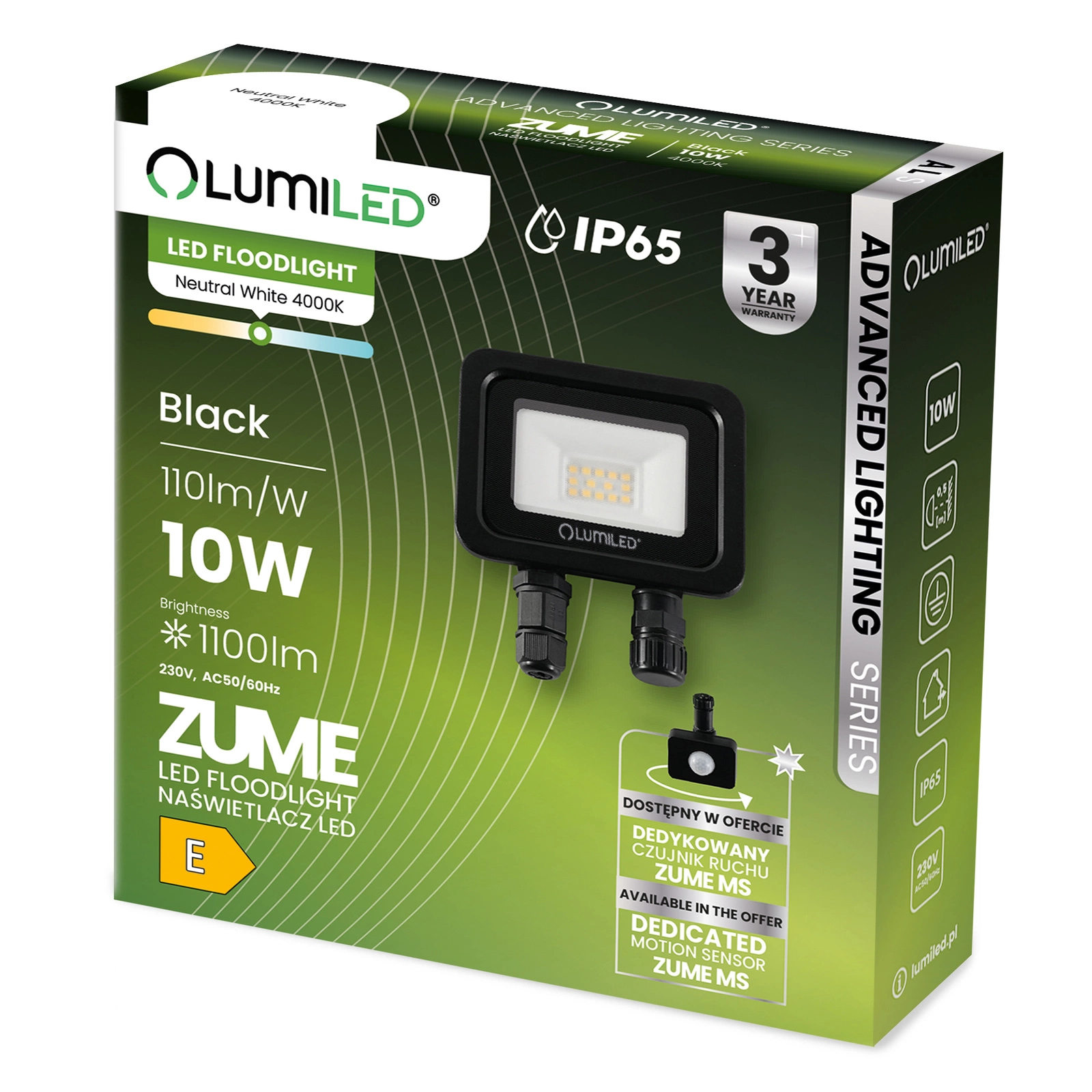 LED světlomet ZUME je vybaven energeticky úsporným 10W LED světelným zdrojem a neutrální barvou světla s barevnou teplotou 4000K , poskytuje osvětlení 1100lm - což nám dává vysoký světelný tok 110lm/W.