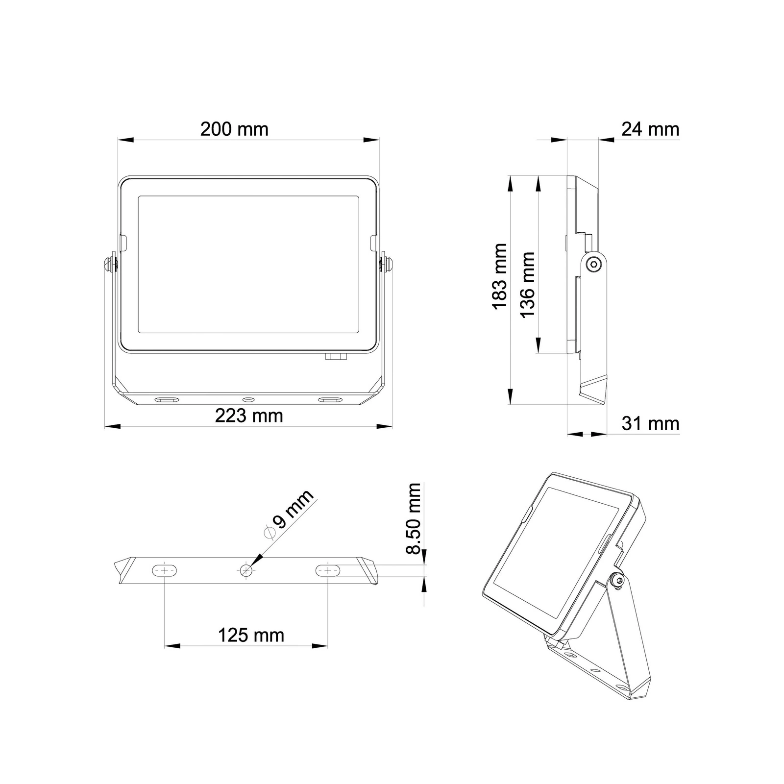 50W LED reflektor ProjectLine je dokonalou kombinací moderního stylu a výkonu. Je vybaven integrovaným zdrojem LED a poskytuje světelný tok 4750 lumenů, což zaručuje jasné a rovnoměrné osvětlení. Díky barevné teplotě 6500 K má světlo studenou bílou barvu, která je ideální pro různé venkovní aplikace. Tento výrobek je vyroben z odolného hliníku s matnou povrchovou úpravou v elegantní černé barvě a vyniká svou odolností a stylovým vzhledem.