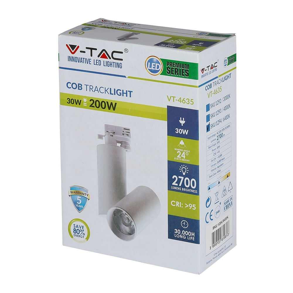 LED reflektor na kolejnici 30W 6400K White VT-4615 V-TAC 5 let záruka