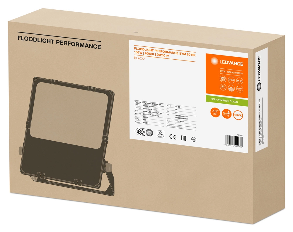 Venkovní reflektor LEDVANCE LED je inovativní řešení osvětlení, které je ideální pro venkovní použití. S příkonem 150 W a jasem 21 000 lumenů nabízí reflektor působivý světelný výkon, který zaručuje dokonalé osvětlení i těch nejtmavších prostor. Výrobek se vyznačuje univerzální barvou světla 4000 K, která je neutrální a příjemná pro oči, a také stupněm krytí IP66, což znamená, že je zcela odolný vůči prachu a proudům vody, takže je ideální do náročných povětrnostních podmínek.