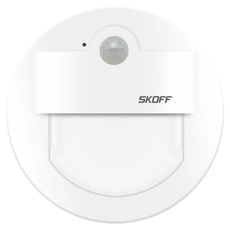 Moderní a vysoce energeticky úsporné schodišťové svítidlo ze série RUEDA PIR v bílé barvě značky Skoff. Svítidlo s integrovaným 2,4W LED světelným zdrojem vyzařuje studené světlo s barevnou teplotou 6500K. LED technologie zajišťuje vysokou energetickou účinnost, odolnost a znamená, že se rámečky ani při dlouhodobém používání nezahřívají.