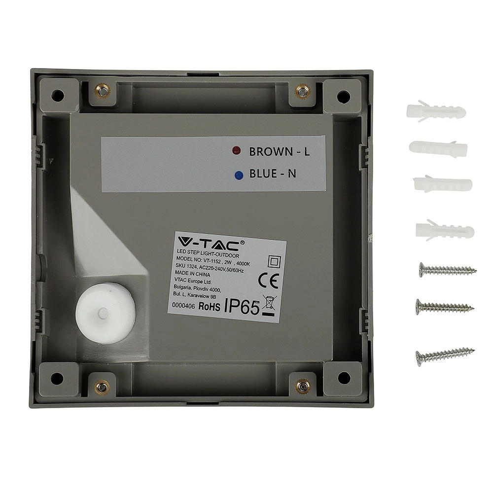 LED schodišťové svítidlo 2W 4000K čtvercové šedé krokové světlo VT-1152 V-TAC