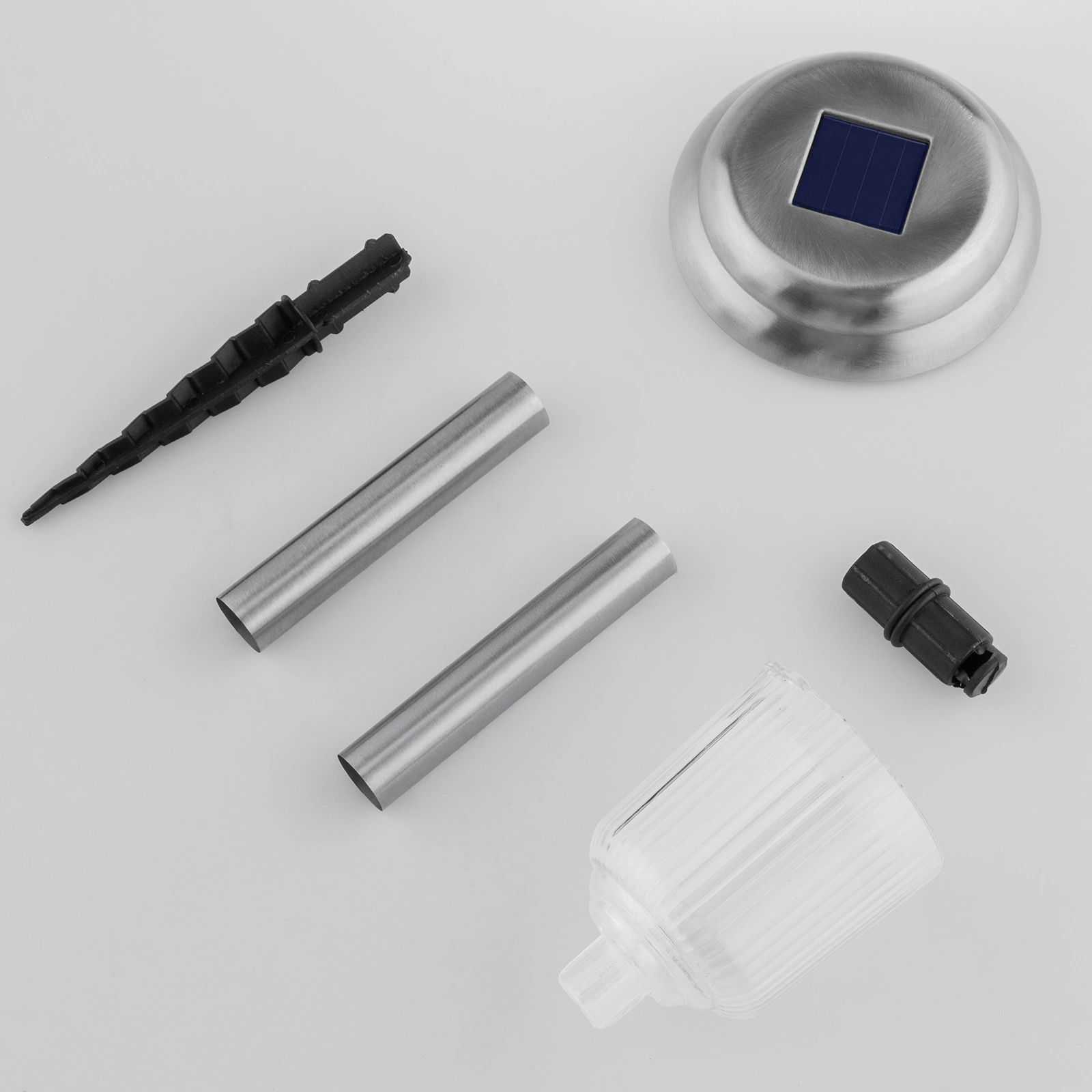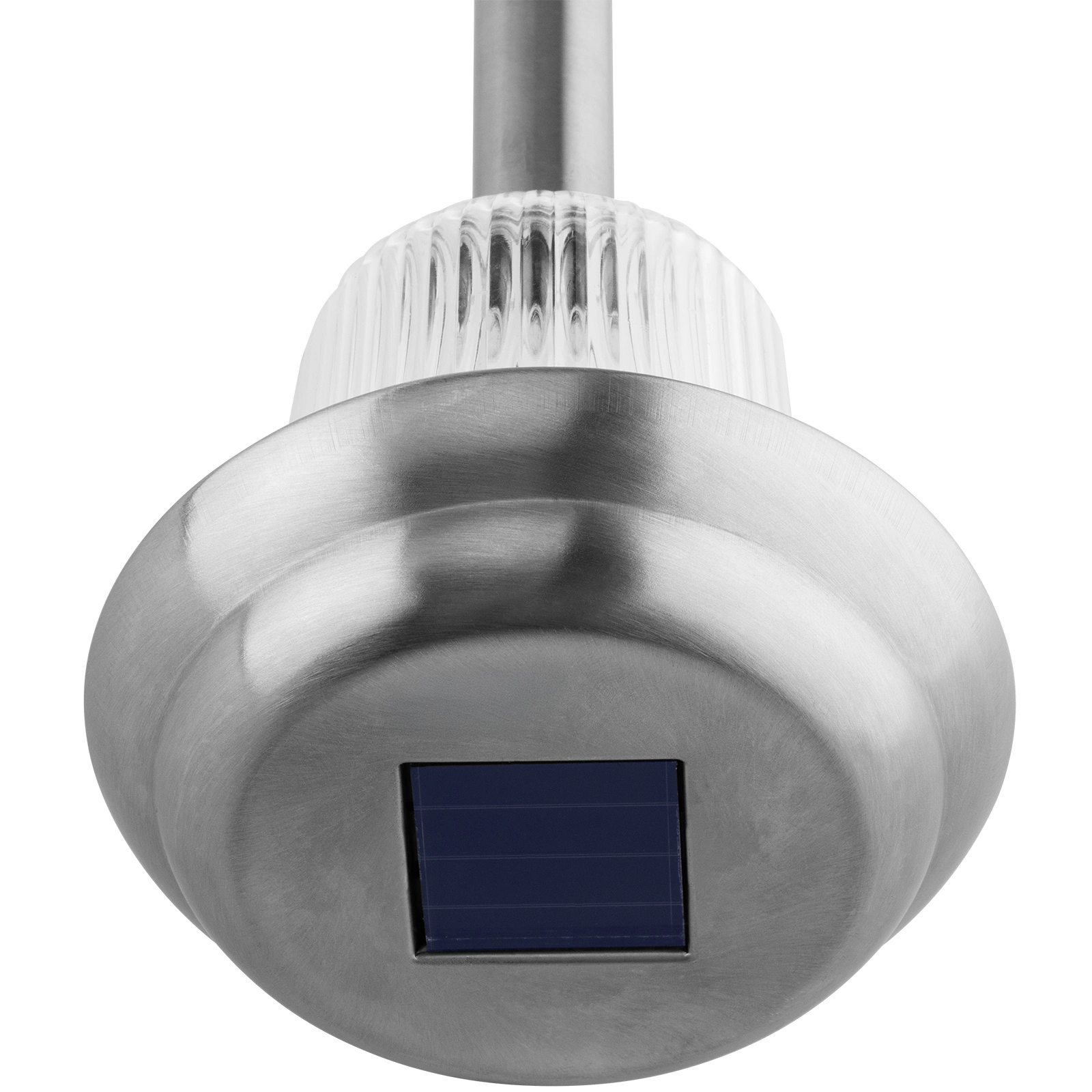 Solární vodotěsná lampa (IP44) v elegantní stříbrné barvě je dokonalým dekorativním i praktickým osvětlením vaší zahrady. Dokonale podtrhne atmosféru okolí vašeho domova, dodá mu jedinečnou atmosféru díky neobvyklé hře světla a stínů a především díky svému nevšednímu designu. Solární osvětlení je nejen vynikajícím zdrojem světla, ale také stylovým a jedinečným dekorativním prvkem, který podtrhne půvab každé zahrady. Solární osvětlení udělá z vaší zahrady potěšení bez ohledu na roční období.