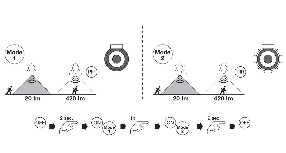 Snímač využívá inteligentní detekční technologii a reaguje na pohyby a zapíná a vypíná světlo