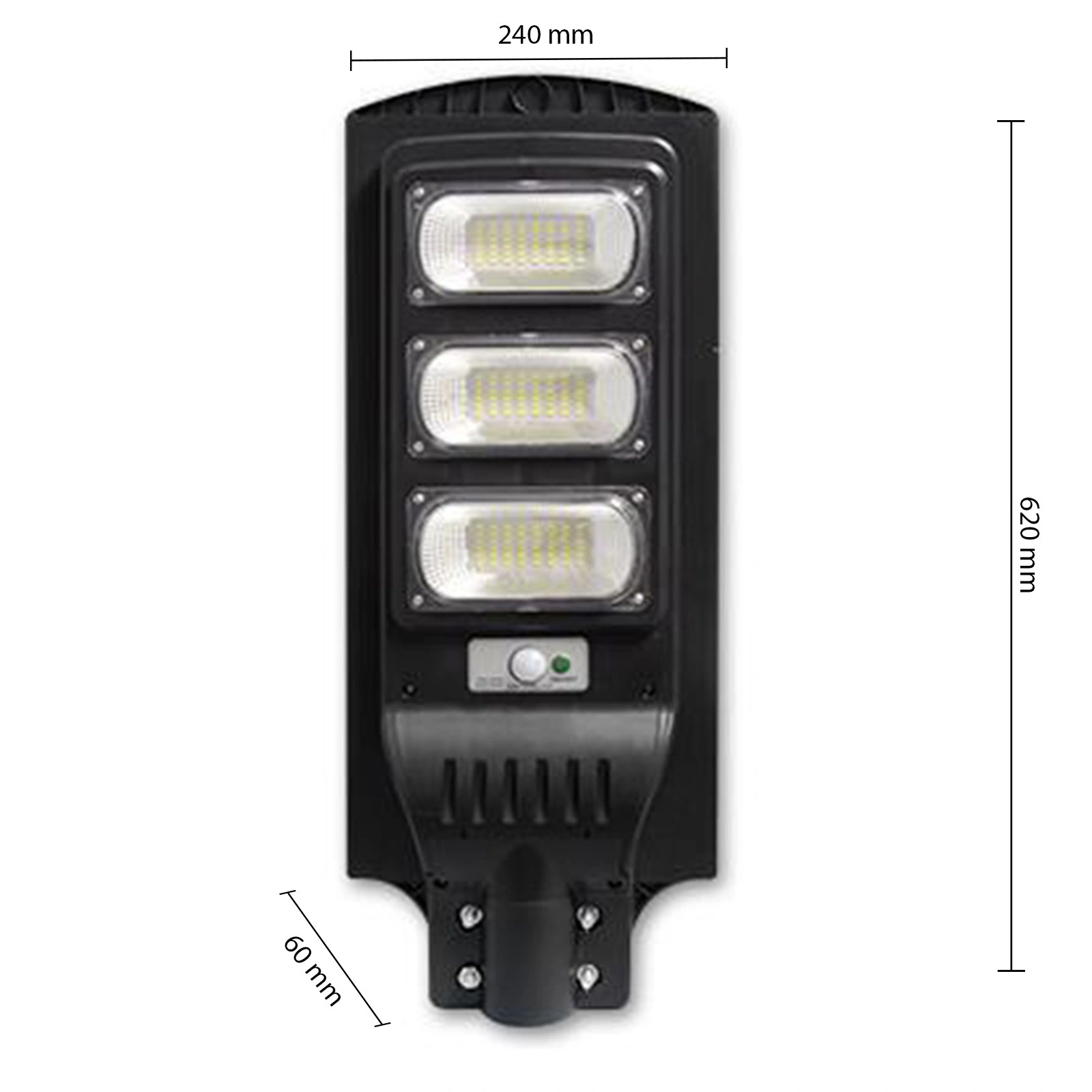 Solární pouliční lampa s pohybovým a soumrakovým senzorem, 150W IP65 6000K, černá , poslouží jako praktické osvětlení vaší zahrady. Solární osvětlení je praktické i ekologické. Je to skvělá náhrada za staré zastaralé a energeticky náročné pouliční lampy. Lampa se skvěle hodí do moderních i klasických domů a hospodářských budov.