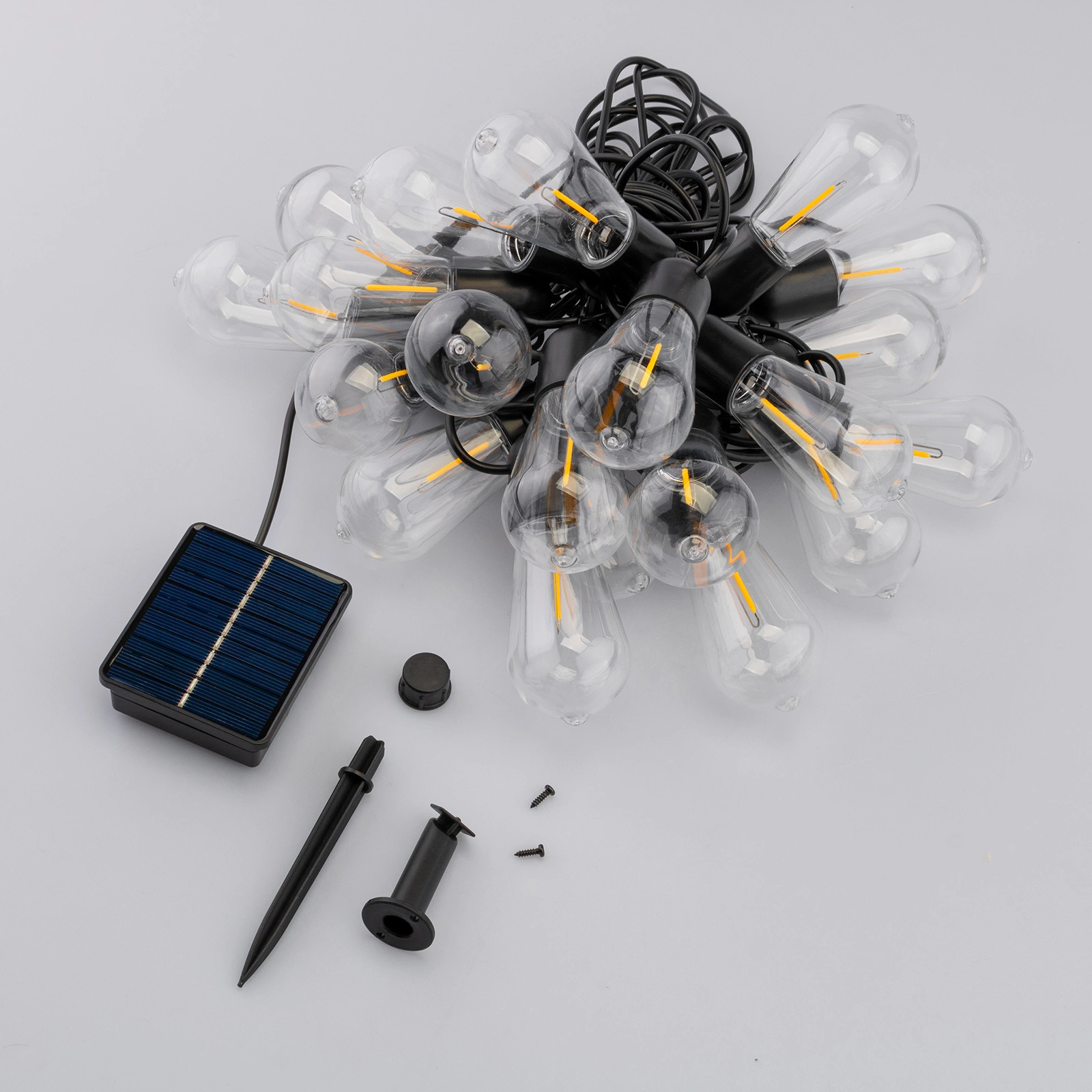 Solární zahradní girlanda 20x LED dekorativní žárovky EDISON ST58 11,48 m teplé 3000K EREMI LUMILED