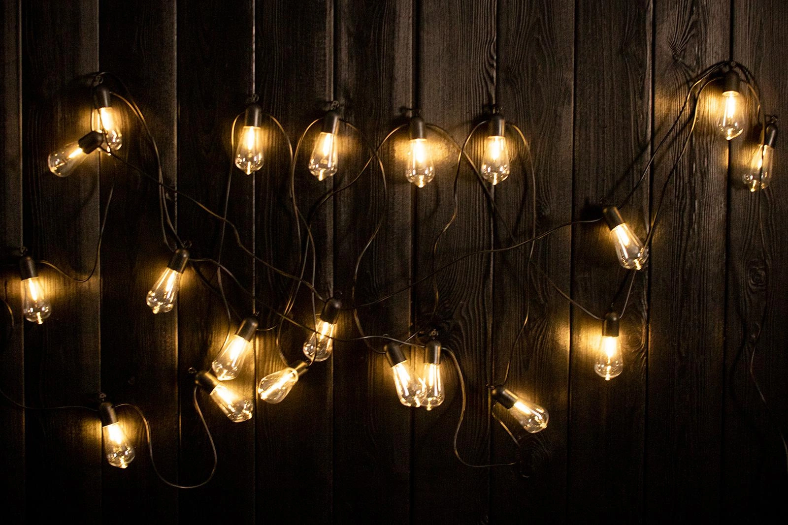 Girland, solární řetěz s dvaceti žárovkami ve tvaru nadčasové žárovky EDISON v průhledné barvě z EREMI známá a renomovaná značka v oboru osvětlení LUMILED promění naši zahradu, dům a terasu v zázrak.