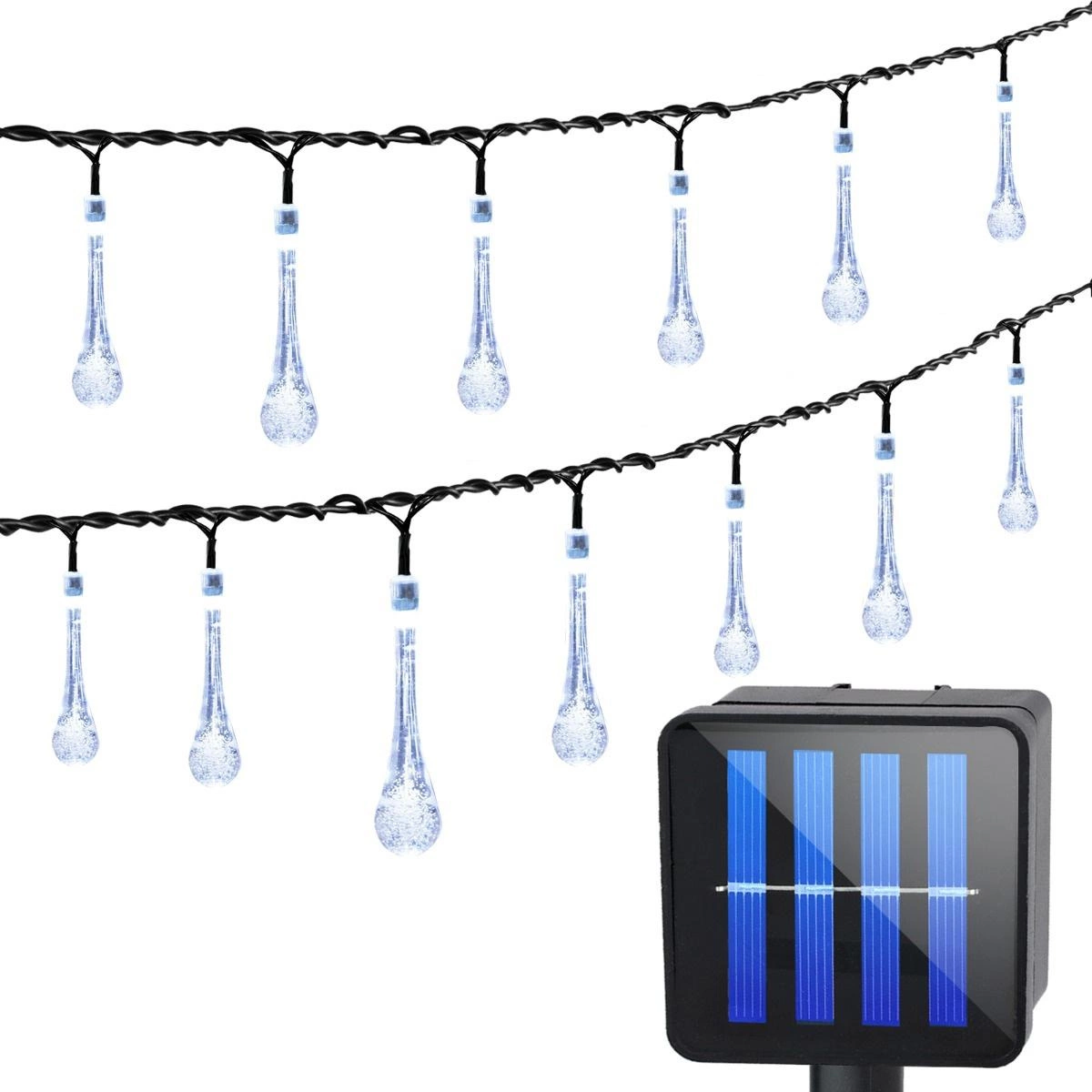 Girlanda , solární řetěz s 30 průhlednými žárovkami ve tvaru rampouchů , promění naši zahradu, dům a terasu v zázrak.