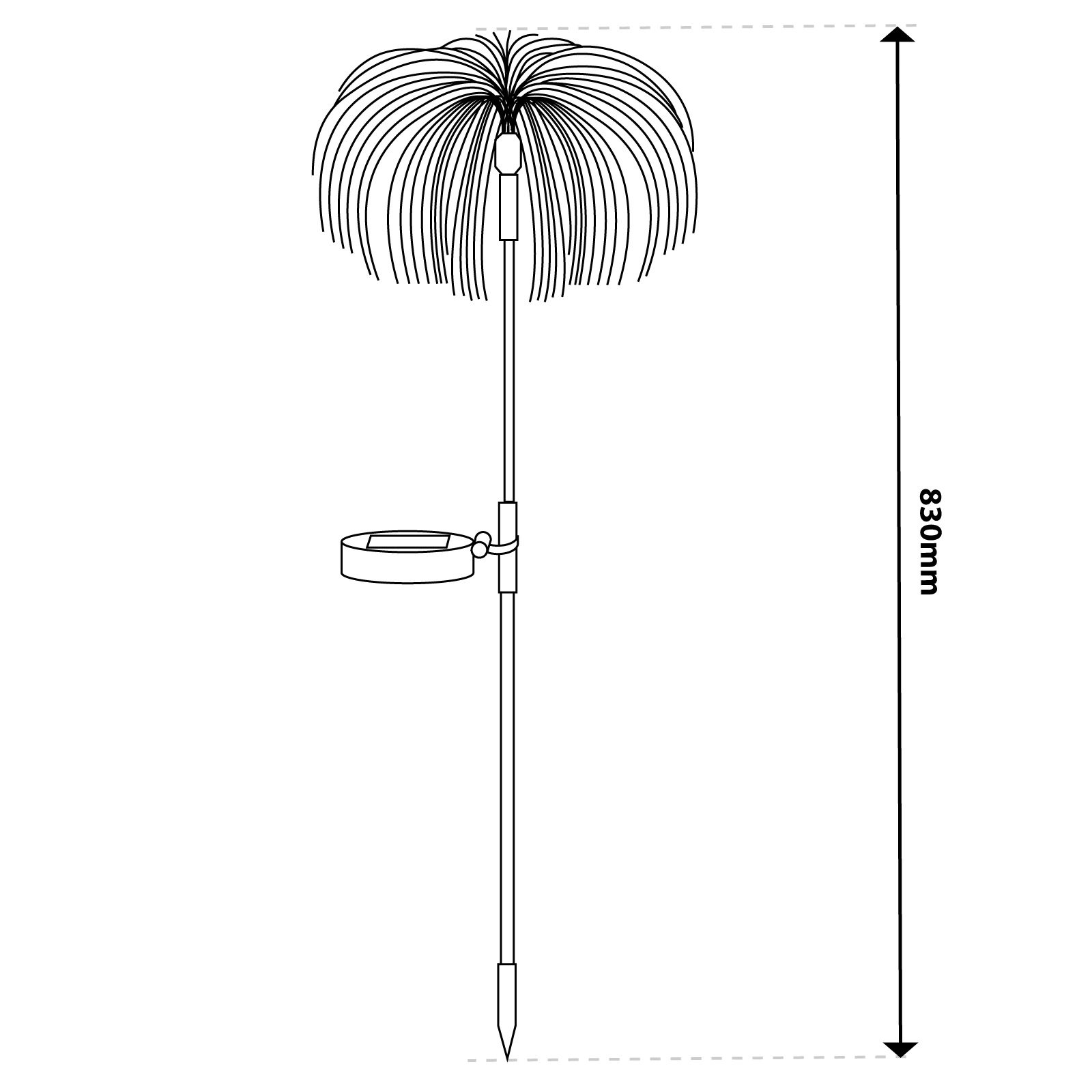 Tato mimořádně působivá 83 cm vysoká solární lampa RGB je dokonalou kombinací moderní technologie a jedinečného designu. Jeho jedinečný design tenkých, jemných světelných vláken připomínající medúzu vytváří velkolepý vizuální efekt, který po setmění oživí každý prostor. Použití technologie RGB LED umožňuje lampě jemně a plynule měnit barvu a vytvářet tak jedinečnou atmosféru na zahradě nebo na terase. Díky vestavěnému solárnímu panelu je zařízení plně soběstačné - stačí mu několik hodin svícení, aby po setmění šířilo fascinující barevné světlo.
