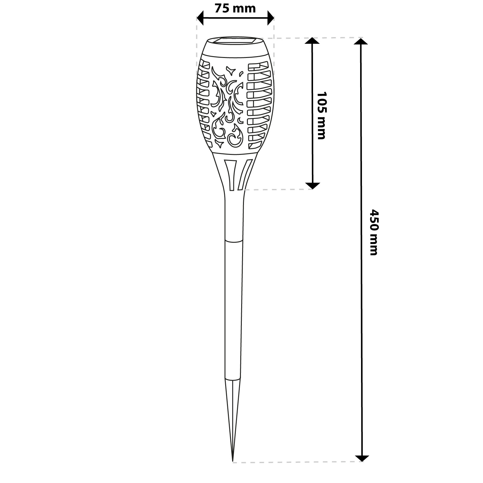 Stylová solární lampa připomínající pochodeň, imitující záři skutečného plamene, je skvělou volbou pro dekoraci zahrady, terasy nebo cest. Díky moderní technologii a soumrakovému senzoru se automaticky zapíná po setmění a poskytuje útulné a atmosférické osvětlení. Solární panel efektivně shromažďuje energii během dne, což umožňuje dlouhodobý a energeticky úsporný provoz. Její jemné světlo nejen podtrhuje kouzlo okolí, ale také zvyšuje bezpečnost osvětlením cest a prostoru kolem domu.