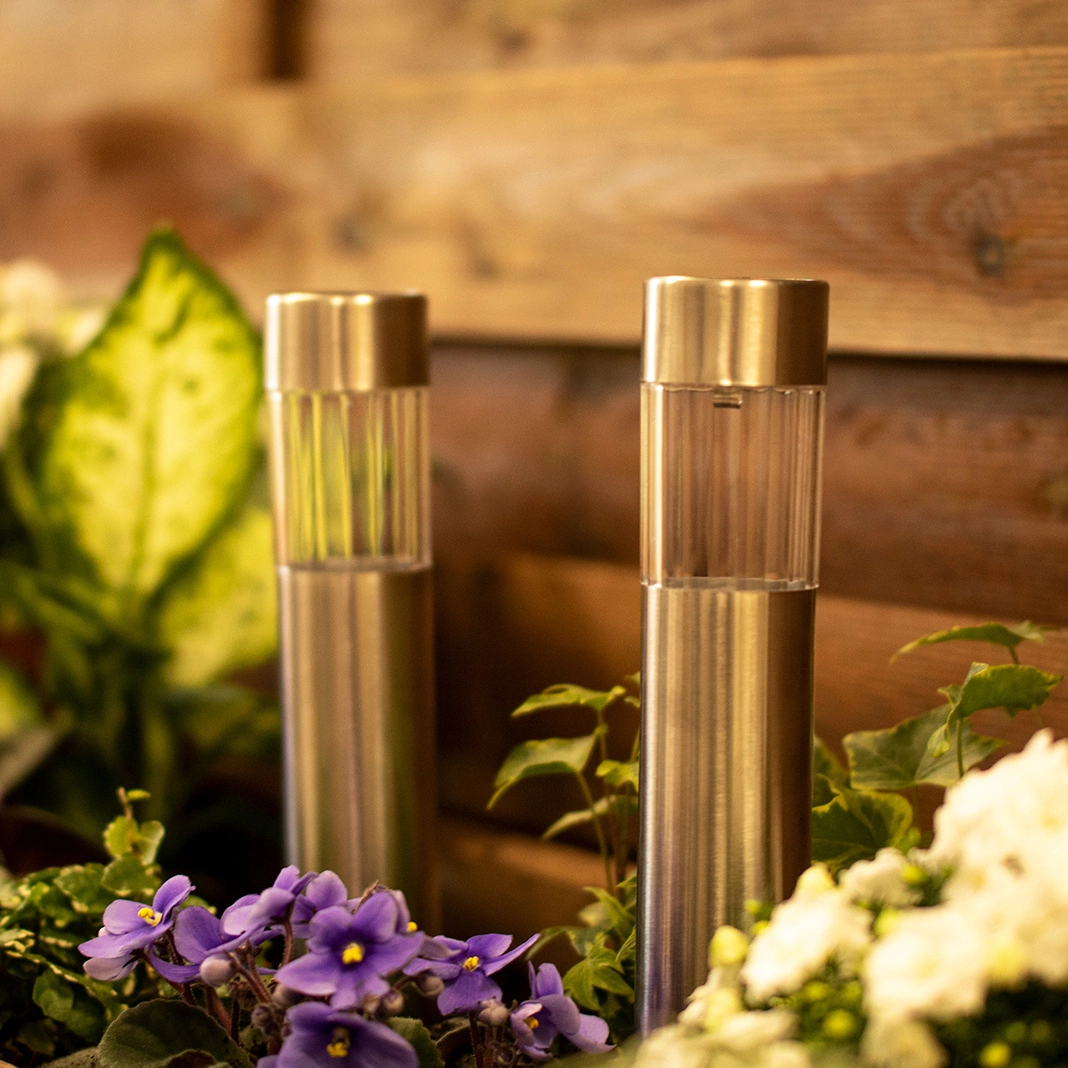 LED solární zahradní lampa, zapuštěná TUBA, nerezová ocel