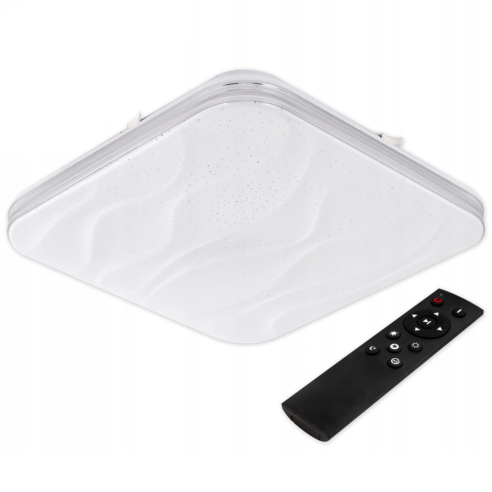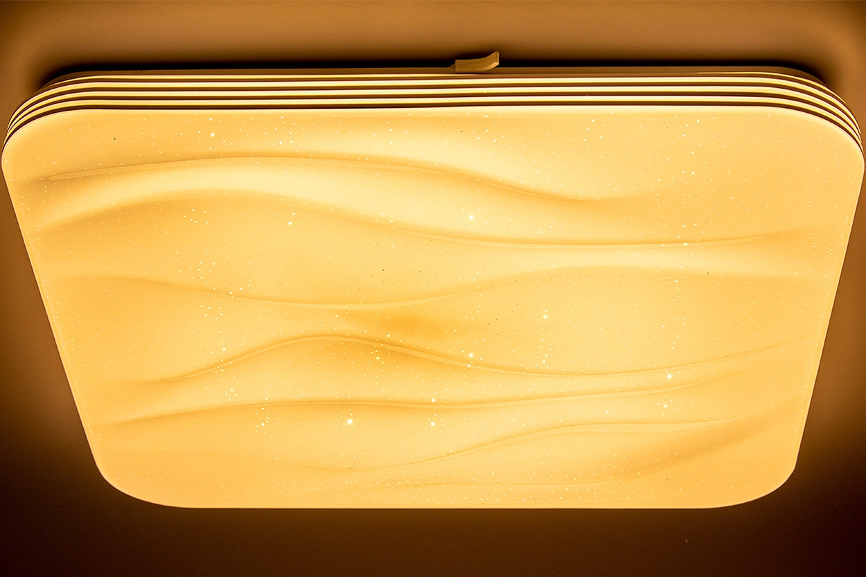 Plafón je vybaven infračerveným dálkovým ovládáním pro dálkové ovládání, díky kterému můžeme plynule nebo okamžitě měnit barvu světla, dim to noční režim nebo nastavit TIMER vypnutí světla po 30 sekundách.