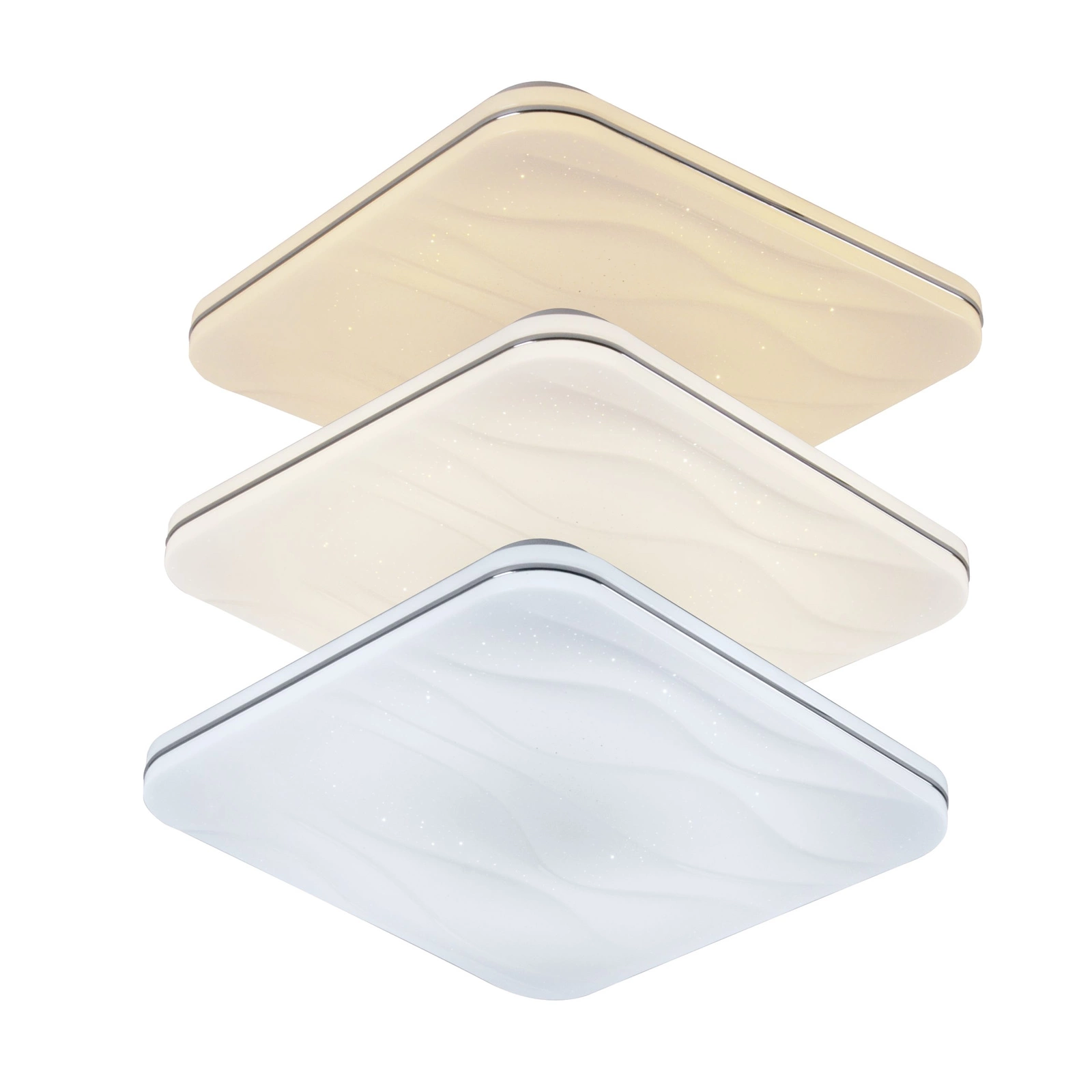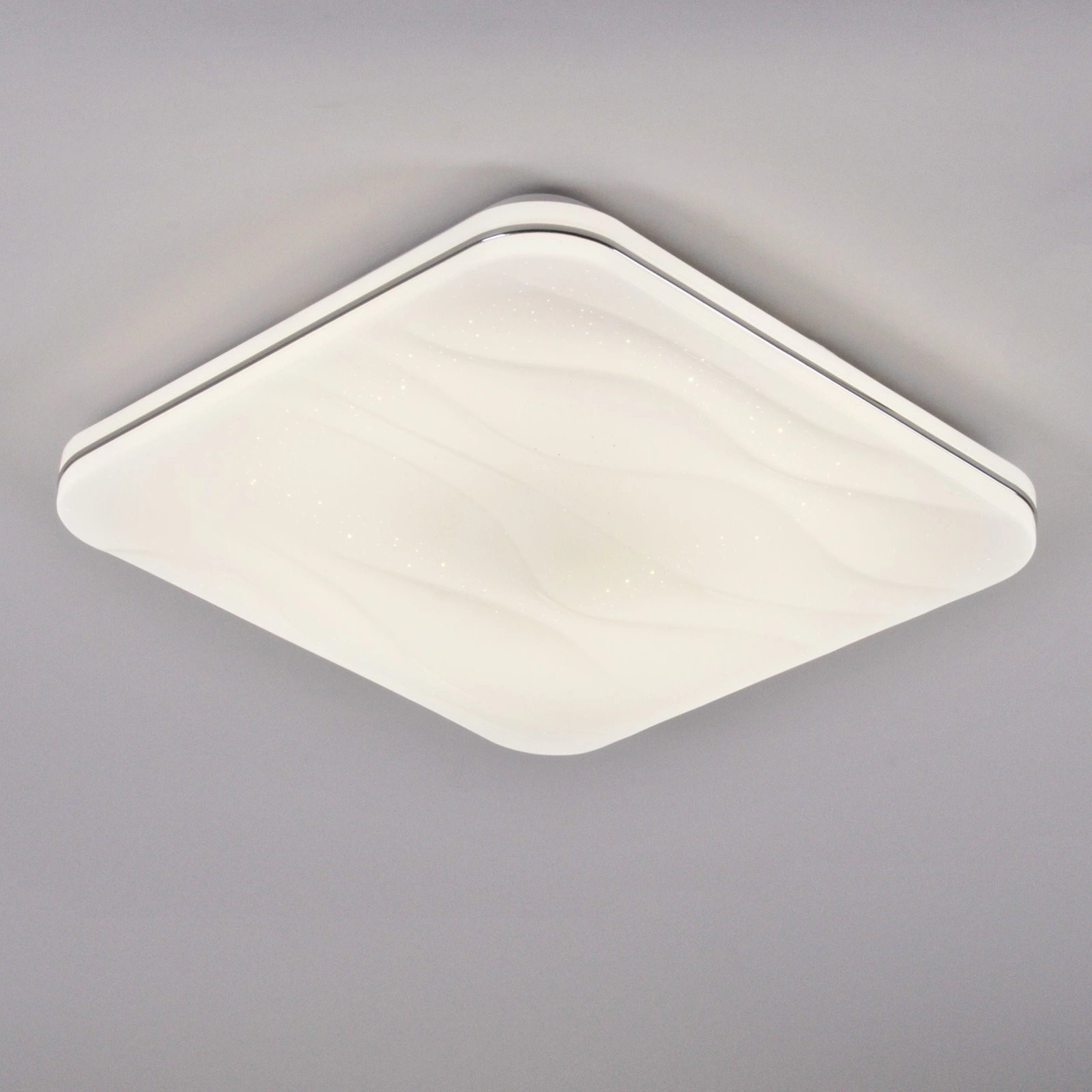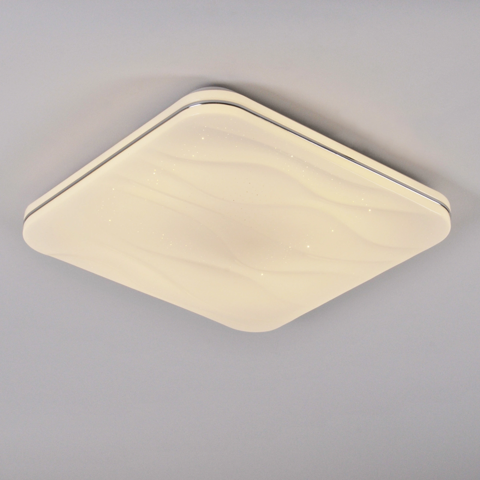 LED diody jsou ukryty pod opálovým stínidlem s jemným vzorem, který vrhá jemné odlesky a poskytuje rovnoměrně rozptýlené světlo, čímž eliminuje negativní efekt oslnění. Pevná a osvědčená konstrukce, stejně jako vynikající poměr ceny a kvality, předurčí prezentované stropní svítidlo nejen do domů a bytů, ale také do hotelů a jiných komerčních prostor atd. Další výhodou je dálkové ovládání, které je součástí dodávky set , který umožňuje pohodlné ovládání osvětlení. Pokud hledáte rám s jiným výkonem nebo tvarem, podívejte se na naše další produkty.
