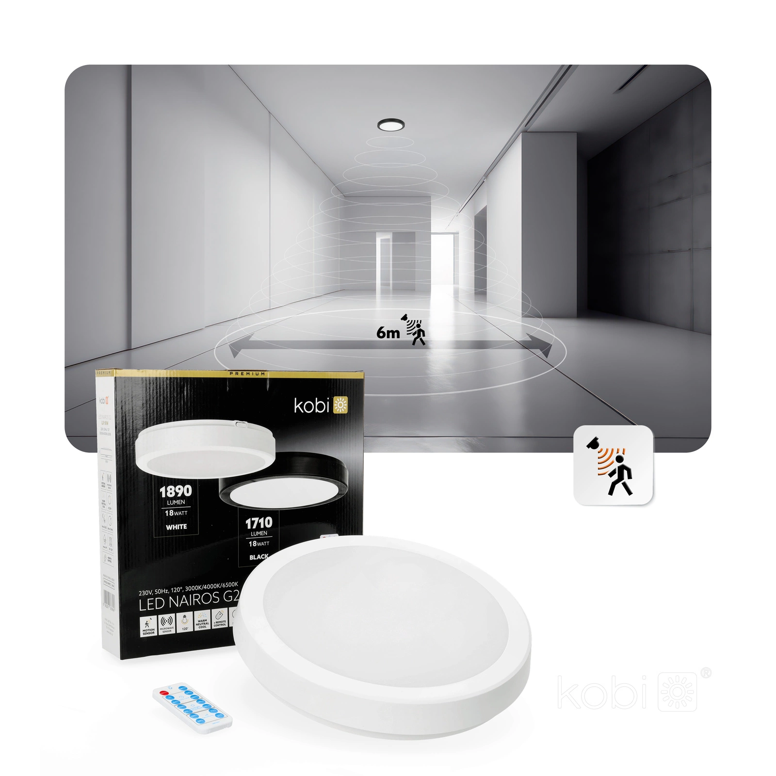 LED stropní svítidlo do koupelny Povrchová montáž 18W 1890lm 4000K 120° s pohybovým a soumrakovým senzorem Bílá IP65 Nairos Kobi