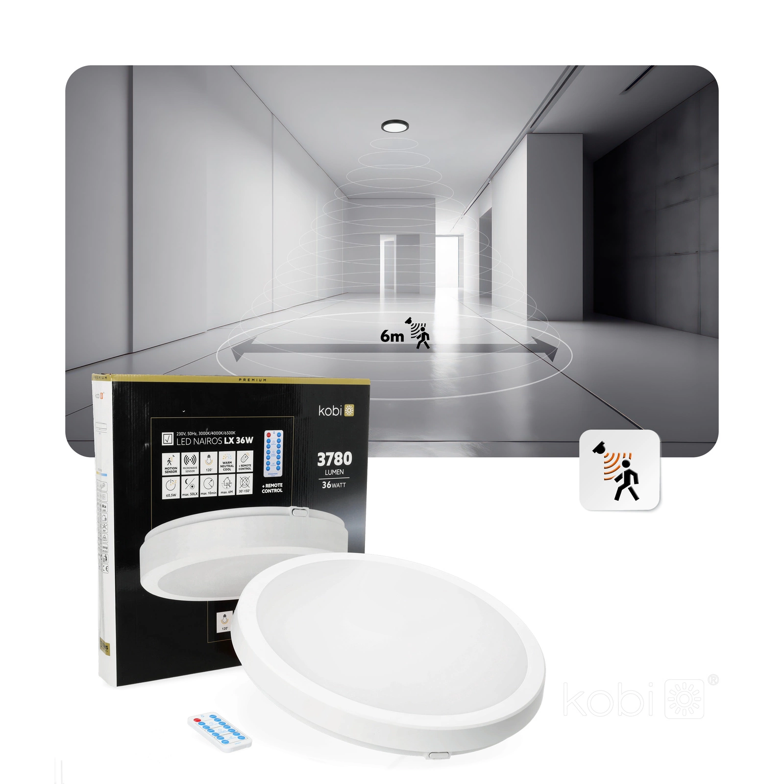 LED stropní svítidlo do koupelny Povrchová montáž 36W 3780lm 4000K 120° s pohybovým a soumrakovým senzorem Bílé IP65 Nairos Kobi