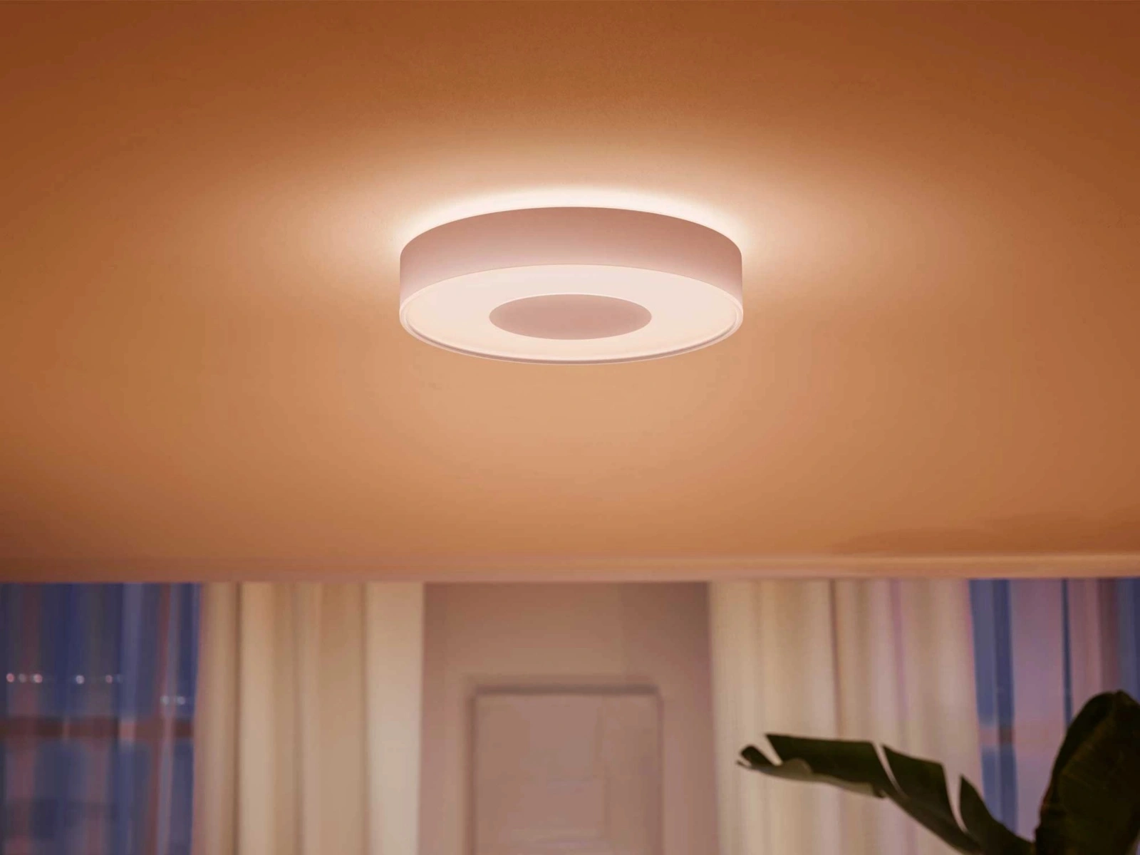 Stropní svítidlo HUE LED uznávaný a respektovaný v oboru osvětlení Philips. Svítidlo vybavené integrovaným světelným zdrojem LED 33,5W a velmi účinný světelný výkon - 2350 lm, vyzařuje teplé příjemné a relaxační světlo, s 16 milionů barev RGB i širokou paletu bílého světla, s nimiž můžeme vytvořit náladu vhodnou pro každou příležitost. Kromě regulace světla v celé škále barevné teploty má svítidlo také funkci okamžité stmívání. HUE Plafond jako barevný světelný akcent rozzáří místnost a každý prvek interiéru.