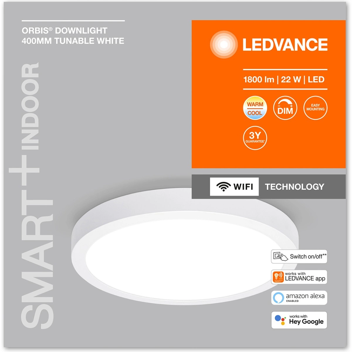 Výrobek se vyznačuje vysokou energetickou účinností (82 lm/W) při jmenovitém výkonu 22 W a je stmívatelný. Díky komunikaci WiFi navíc nabízí plné ovládání prostřednictvím chytrého telefonu. Jeho životnost až 25 000 hodin a odolnost vůči vlhkosti (IP20) zajišťují dlouhodobé používání. Je ideální pro použití v interiérech, lze jej namontovat na povrch a je připraven k použití za pouhých 0,5 sekundy. Tento panel jistě uspokojí potřeby všech milovníků moderních technologií.
