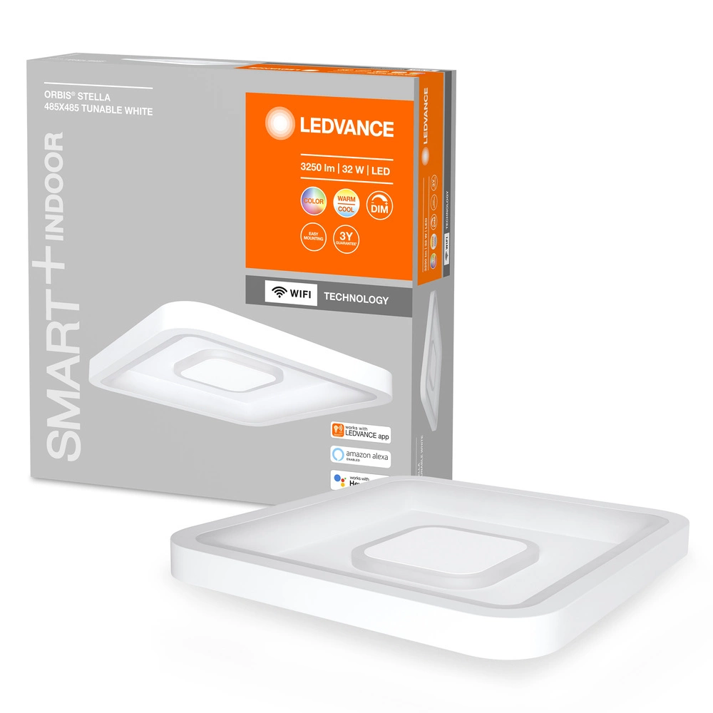 Svítidlo Orbis Ledvance SMART+ WiFi LED Plafond Surface Mounted Lamp je moderní řešení osvětlení, které je ideální pro použití v interiéru. Díky vestavěnému světelnému zdroji poskytuje 32W svítidlo jas 1800 lm, což znamená světelnou účinnost 57 lm/W. Možnost nastavení barvy světla v rozsahu CCT a vícebarevná možnost RGB, stejně jako funkce stmívání, umožňují přizpůsobit osvětlení jakékoli situaci.