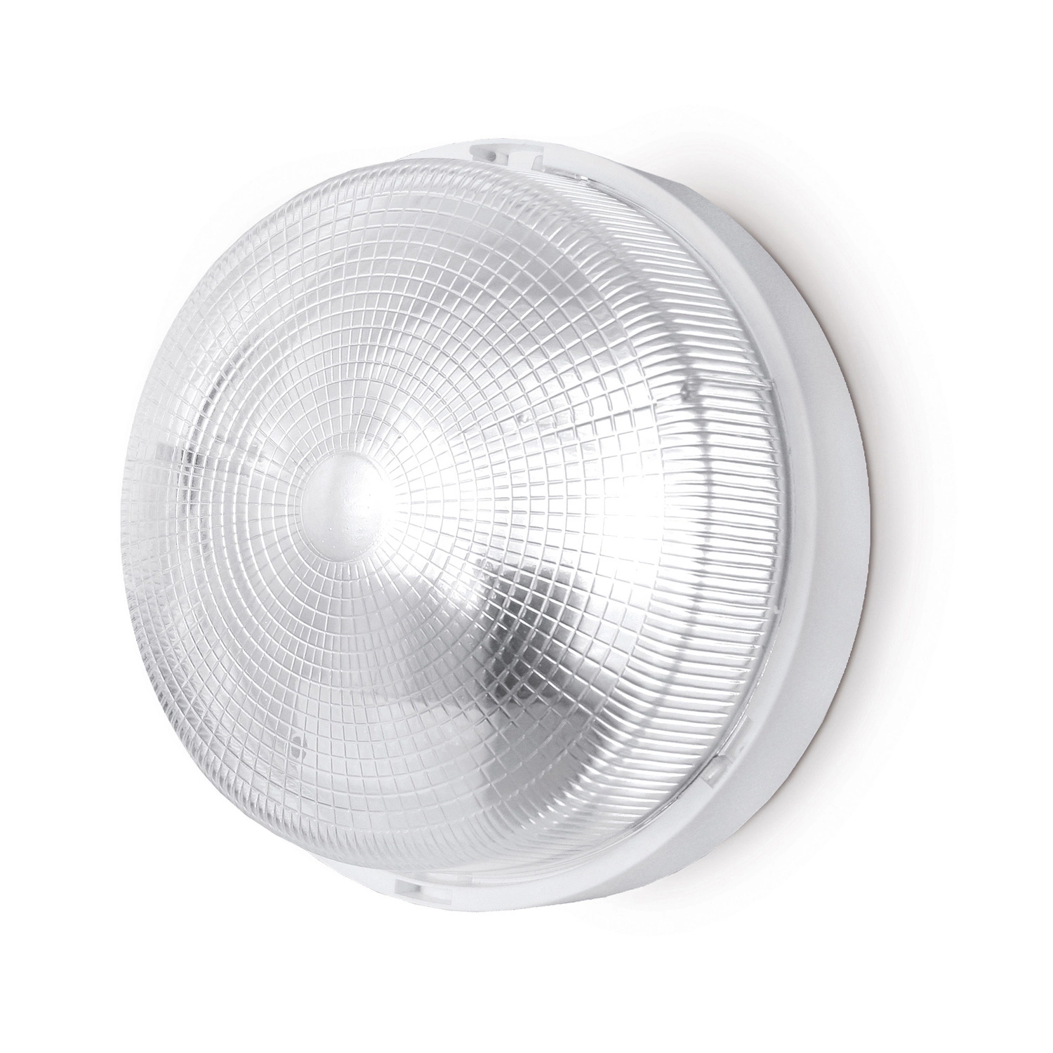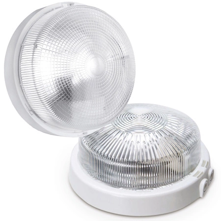 Levné řešení pro efektivní osvětlení. Bílé svítidlo s průhledným stínidlem pro montáž na strop nebo na stěnu.