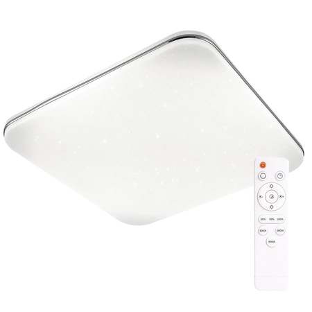 Stropní svítidlo Stmívatelné stropní svítidlo, model Syrius B036, značky Polux je moderní LED stropní svítidlo vyrobené z vysoce kvalitních materiálů, které se vyznačují moderním a módním vzhledem. Svítidlo využívá vysoce výkonné, energeticky úsporné LED světelné zdroje s celkovým výkonem 68W v teplé bílé od 2700K do studené 6500K , vyzařující světelný tok 7500lm . LED diody jsou ukryty pod opálovým stínidlem s hladkým povrchem, které vrhá jemné odlesky a poskytuje rovnoměrně rozptýlené světlo, čímž eliminuje negativní efekt oslnění. Pevná a osvědčená konstrukce, stejně jako vynikající poměr ceny a kvality, předurčí prezentované stropní svítidlo nejen do domů a bytů, ale také do hotelů a jiných komerčních prostor atd. Další výhodou je dálkové ovládání, které je součástí dodávky set , který umožňuje pohodlné ovládání osvětlení. Pokud hledáte rám s jiným výkonem nebo tvarem, podívejte se na naše další produkty.