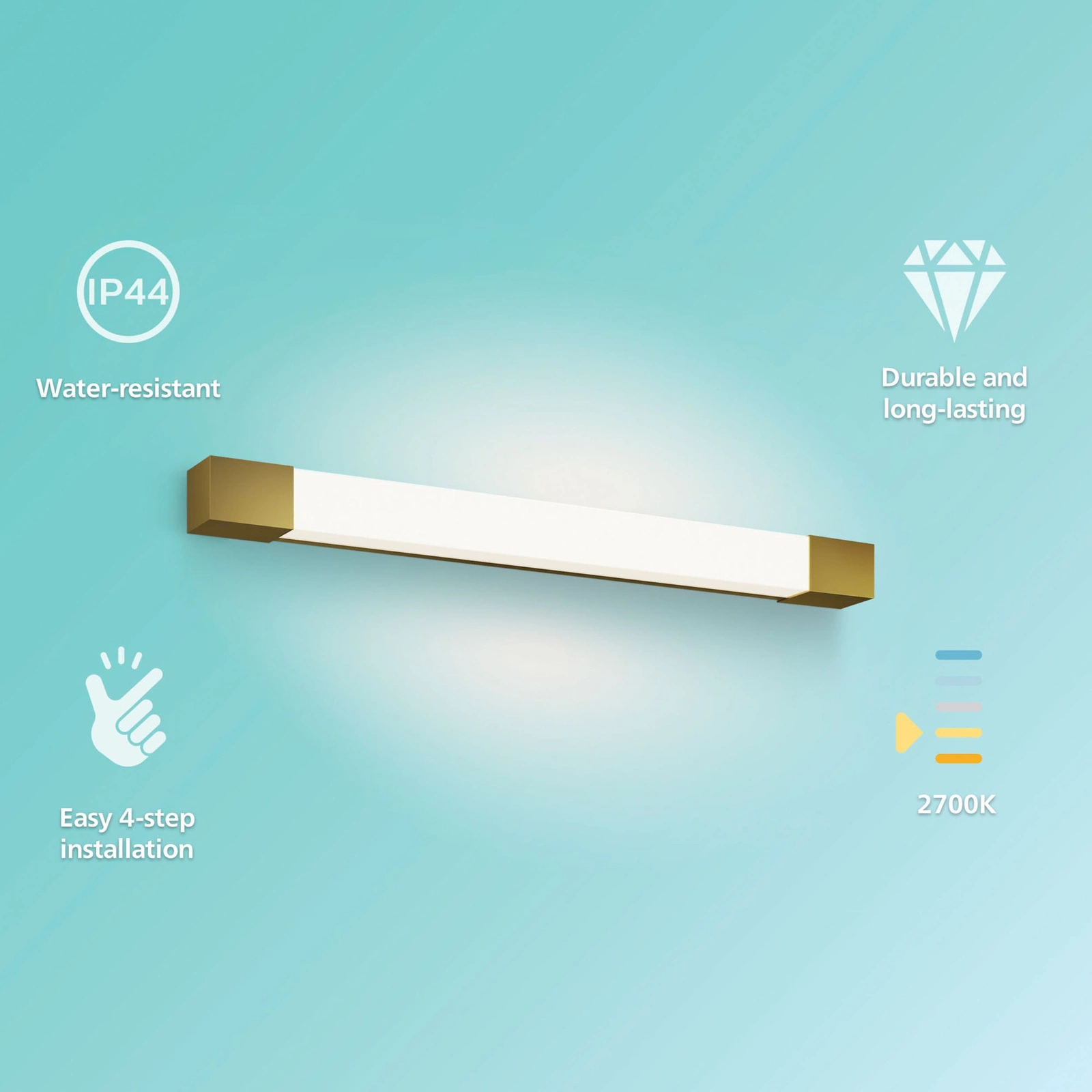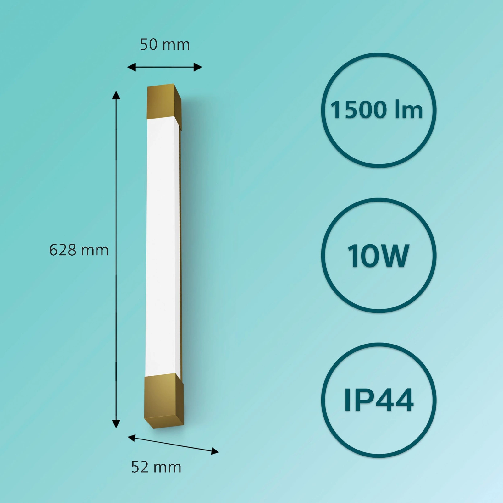 Představujeme vám moderní 10W LED svítidlo nad zrcadlo o délce 62 cm, které je ideální pro stylové koupelny a komerční prostory. Díky použití LED diod se lampa vyznačuje vysokým světelným výkonem 1500 lm a teplým odstínem světla 2700 K, což poskytuje příjemný vizuální zážitek a komfort při používání. Lampa byla pečlivě navržena a její elegantní měděná barva se dokonale hodí do moderního uspořádání. Díky vysokému stupni krytí IP44 je lampa vhodná pro použití v místnostech s vysokou vlhkostí, takže je ideální do koupelen. Výrobek z řady Rover Philips má nejen estetický design, ale je také odolný a nabízí životnost až 50 000 hodin. Výběrem této lampy investujete do osvětlení, které je funkční a elegantní zároveň.