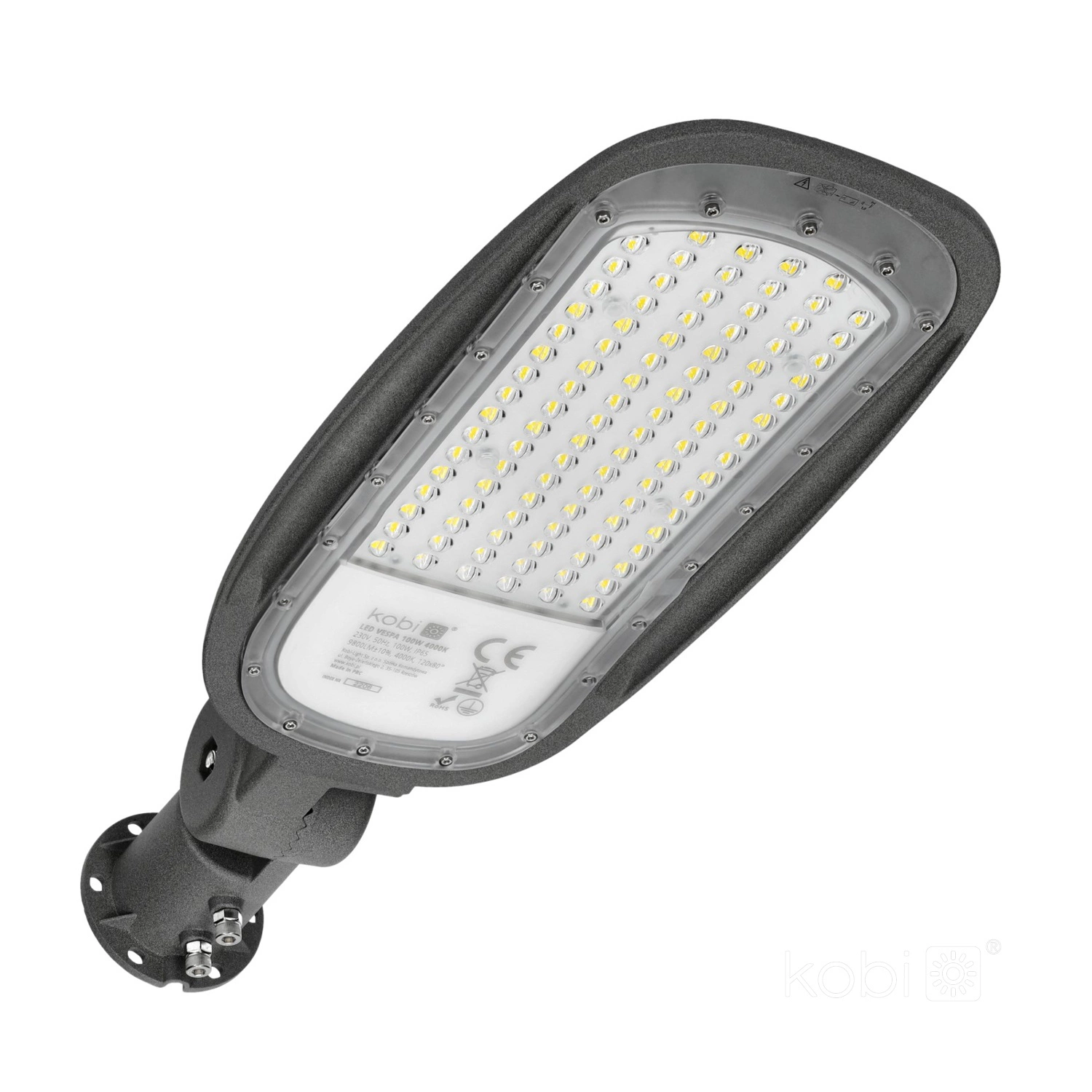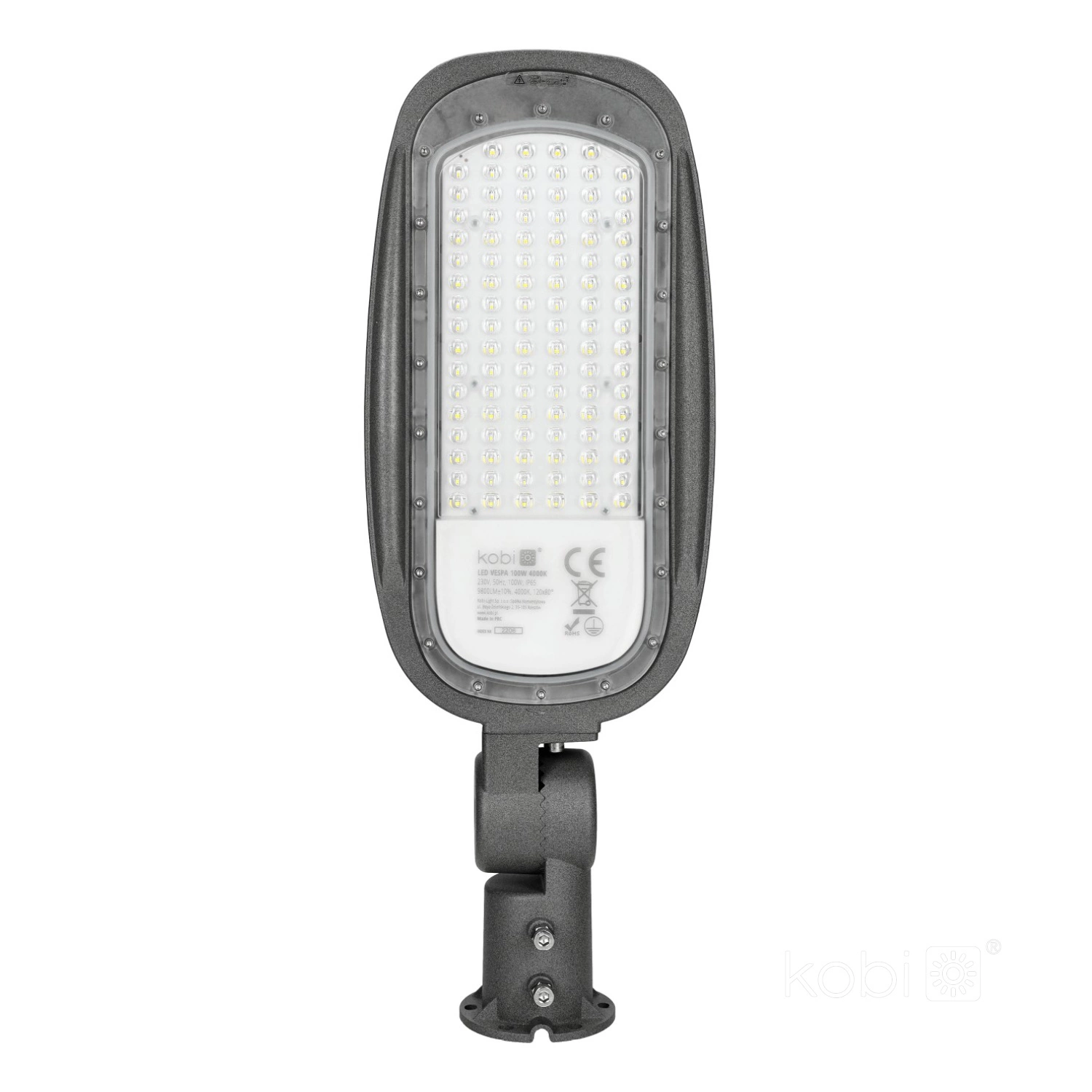 Průmyslová pouliční lampa LED Vespa od společnosti Kobi je dokonalým řešením osvětlení venkovních prostor, jako jsou ulice, zahrady, terasy nebo garáže. Použití integrované 100W LED technologie se světelným tokem 9800 lm zajišťuje vynikající viditelnost a energetickou účinnost, což se projeví v úspoře energie. Neutrální bílá barva světla 4000 K podporuje přirozené okolní osvětlení, které je zásadní pro bezpečnost a vizuální komfort.