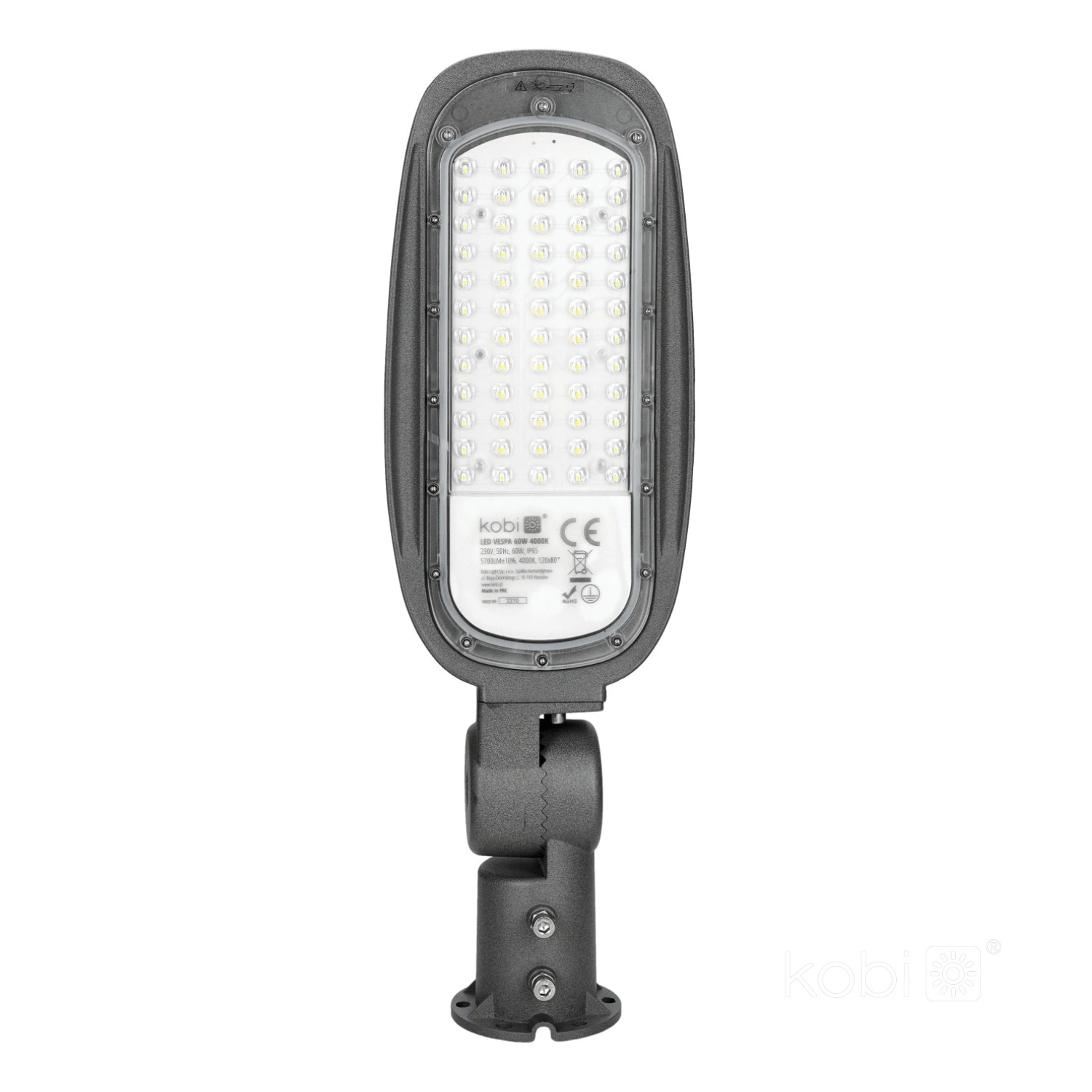 Průmyslová pouliční lampa LED Vespa Kobi je spolehlivé řešení osvětlení pro venkovní použití. Se jmenovitým příkonem 60 W a světelným tokem 8400 lm nabízí optimální jas, který je ideální pro osvětlení ulic, zahrad nebo průmyslových prostor. Vyzařuje světlo s neutrální bílou barvou 4000 K, které poskytuje vynikající viditelnost a příjemný vizuální zážitek. Vysoká světelná účinnost 140 lm/W zaručuje energetickou účinnost, což se projevuje v nižších provozních nákladech.