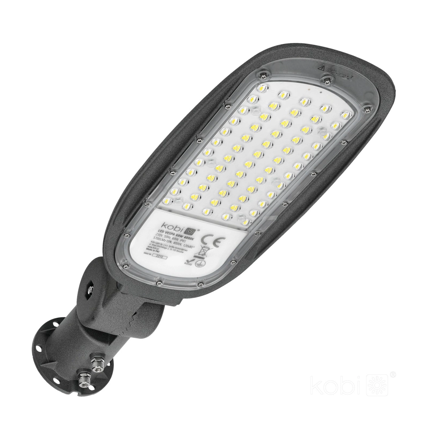 Pouliční svítidlo LED Industrial Road Luminaire 60W 8400lm 4000K neutrální bílá IP66 IK08 šedé Vespa Kobi