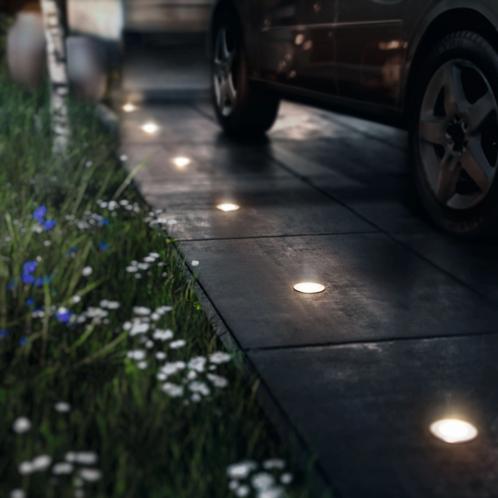 Lampa MOSS je odolné zemní svítidlo s integrovaným 3W LED světelným zdrojem (nevyměnitelné). Svítidlo bylo navrženo speciálně pro venkovní použití, takže je odolné a osvětlí zahradu po dlouhou dobu. Bezpečné venkovní použití zajišťuje vysoká odolnost na úrovni IP67 , která umožňuje dočasné zaplavení svítilny nebo přejetí autem. Proto je ideální pro osvětlení externích komunikačních tras , jako jsou chodníky, cesty nebo příjezdové cesty.