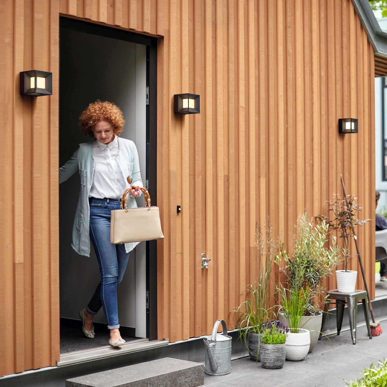 Nástěnné svítidlo PARTERRE je světelná kostka zasazená do podstavce z odolného litého hliníku. Důmyslný design nástěnného svítidla přitahuje pozornost a světlo ze svítidla směřuje paprsky teplého bílého světla na stěnu všemi směry. Svítidlo má integrovaný 8W LED světelný zdroj (nevyměnitelný) . Bezpečné venkovní použití zajišťuje zvýšená odolnost na úrovni IP44 . Díky lampě PARTERRE bude váš dům v noci vyzařovat příjemnou, intimní atmosféru.