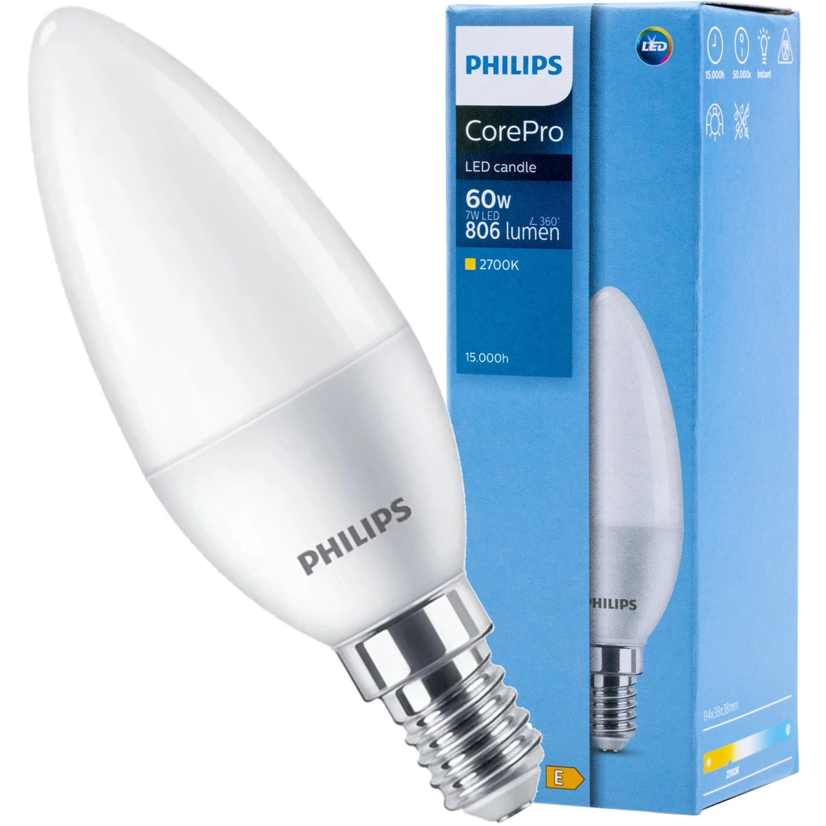 LED žárovka od renomované a v osvětlovacím průmyslu uznávané společnosti PHILIPS s paticí E14 a výkonem 7W. Žárovka je ideální pro každou domácnost, obchod, hotel nebo restauraci jako akcentační nebo dekorativní osvětlení a lze ji instalovat do všech tradičních svítidel vybavených paticí E14 .