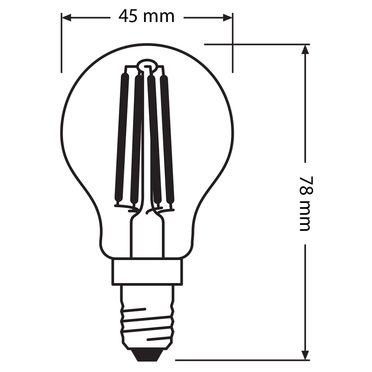 E14 P45 LED žárovka 4W = 40W 470lm 2700K Teplé 300° vlákno OSRAM STAR