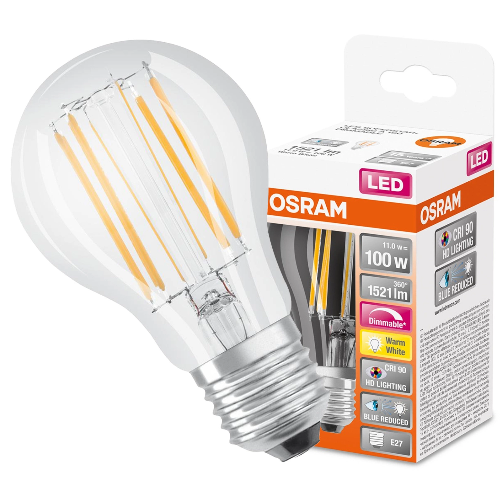 LED žárovka A60 E27 11W = 100W 1521lm 2700K teplá bílá CRI90 300° stmívatelná vlákno SUPERSTAR PLUS CLASSIC Osram