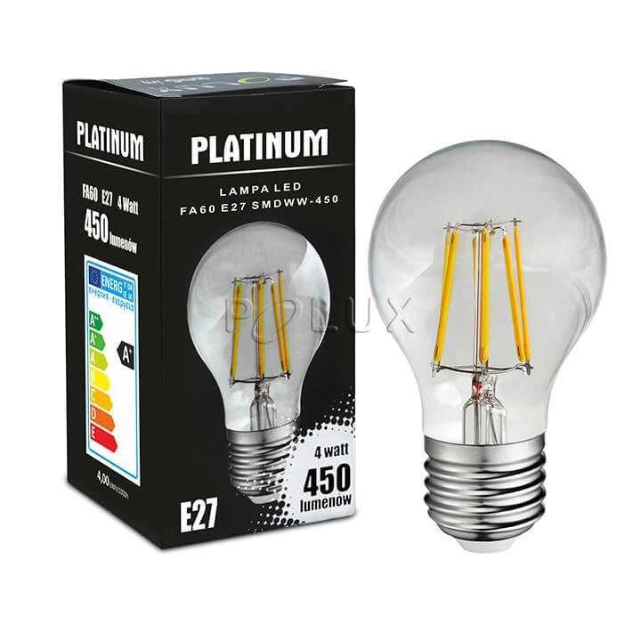 LED žárovka FILAMENT od renomované společnosti POLUX , uznávané v osvětlovacím průmyslu, s paticí E27 a výkonem 4W (odpovídá klasické 40W žárovce ) je vysoce kvalitní LED světelný zdroj. Svítidlo bylo vyrobeno pomocí moderních řešení využívajících inovativní LED technologii , která se vyznačují vysokou účinností světelných parametrů, věrnou reprodukcí barev osvětlovaných předmětů a mimořádně dlouhou životností.