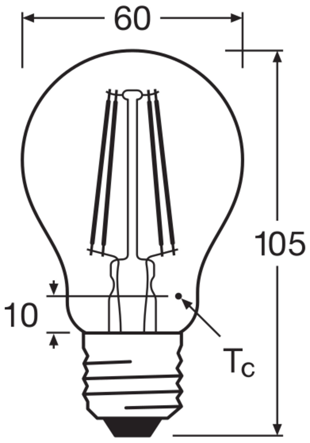 LED žárovka E27 A60 7W = 60W 806lm 2700K teplá bílá 300° Filament BASE Osram