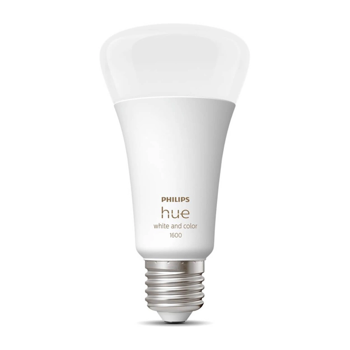 Žárovka HUE LED uznávaný a respektovaný v oboru osvětlení Philips. Žárovka se závitem E27 a výkon 13,5W odpovídá klasické 75W žárovce. Výrobek s velmi účinným světelným tokem - 1521lm, vyzařuje teplé příjemné a relaxační světlo, s 16 milionů barev RGB i širokou paletu bílého světla, s nimiž můžeme vytvořit náladu vhodnou pro každou příležitost. Kromě kontroly světla v celé teplotní stupnici má žárovka také funkci okamžité stmívání.