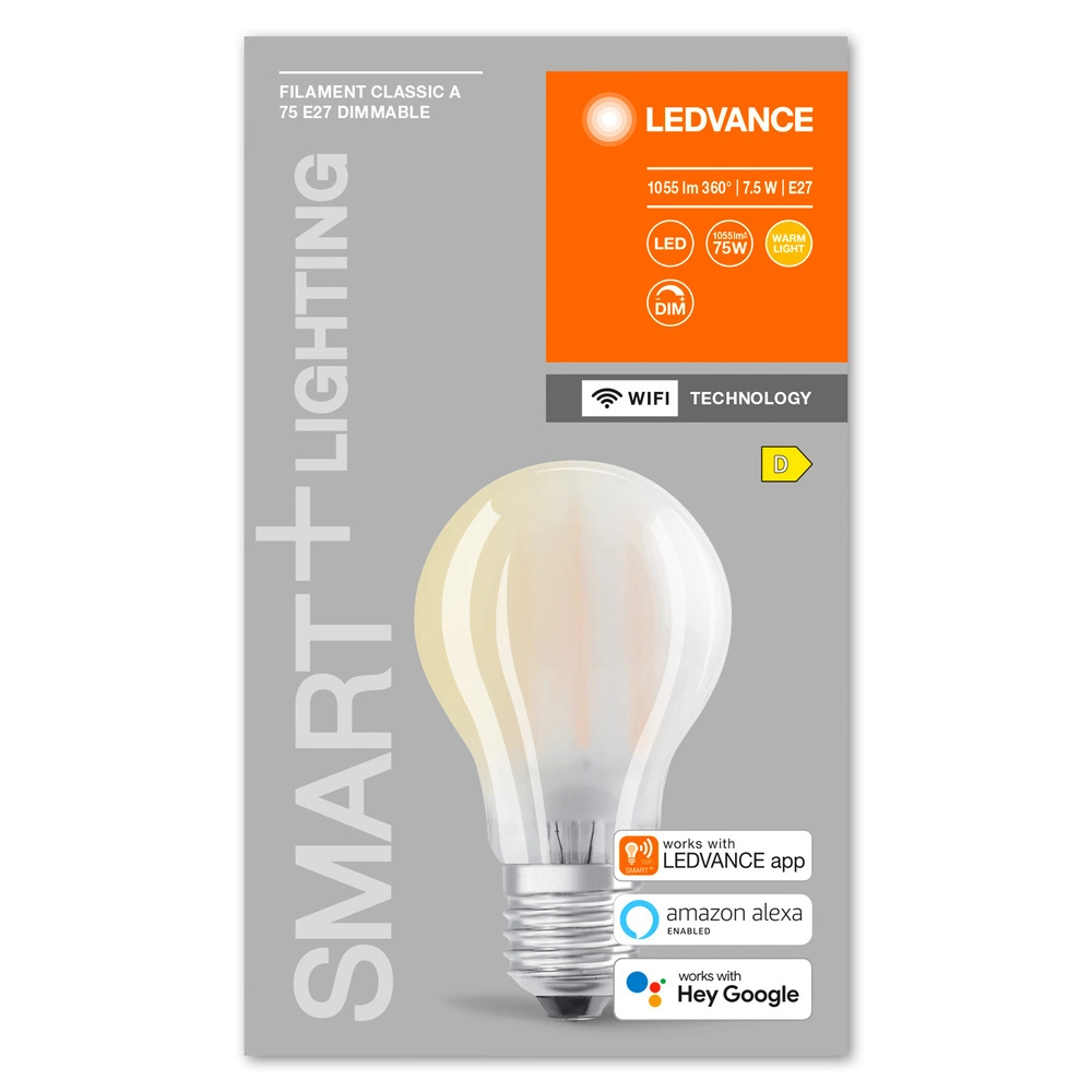 7,5W LED žárovka E27, která odpovídá klasické 75W žárovce, kombinuje moderní technologii s klasickým designem díky řadě Filament Classic. Vyznačuje se vysokým světelným tokem 1055 lm a světelnou účinností 141 lm/W, čímž poskytuje bílé teplé světlo s indexem podání barev Ra 80. Díky možnosti stmívání můžete nezávisle nastavit jas podle svých potřeb.