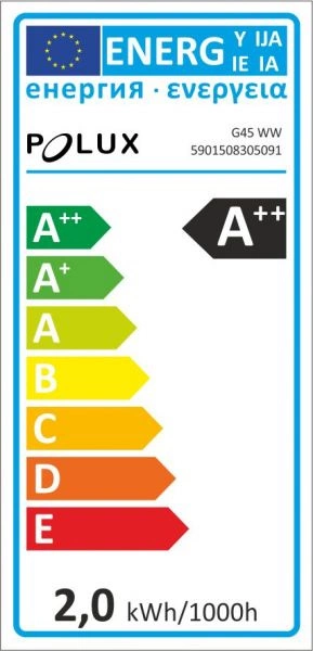 LED žárovka E27 G45 2W = 23W 230lm 3000K Teplá bílá 280° vlákno GOLDLUX (Polux)