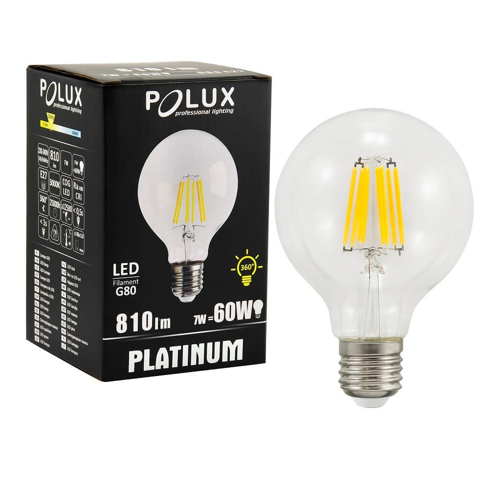 Žárovka G80 Filament od renomované a v osvětlovací branži uznávané firmy Goldlux s paticí E27 a výkonem 7W (odpovídá klasické 60W žárovce ) je vysoce kvalitní LED světelný zdroj. Svítidlo bylo vyrobeno pomocí moderních řešení využívajících inovativní LED technologii , která se vyznačují vysokou účinností světelných parametrů, věrnou reprodukcí barev osvětlovaných předmětů a mimořádně dlouhou životností.