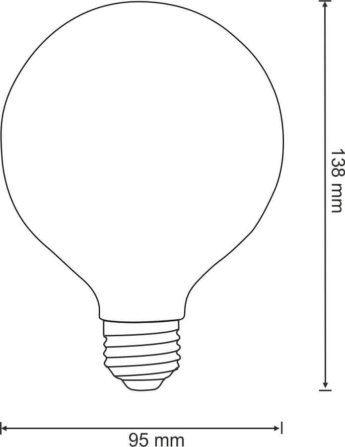 Žárovka G95 Filament Extra Warm White od renomované a v osvětlovací branži uznávané firmy Goldlux s paticí E27 a výkonem 4W (odpovídá klasické 21W žárovce ) je vysoce kvalitní LED světelný zdroj. Svítidlo bylo vyrobeno pomocí moderních řešení využívajících inovativní LED technologii , která se vyznačují vysokou účinností světelných parametrů, věrnou reprodukcí barev osvětlovaných předmětů a mimořádně dlouhou životností.