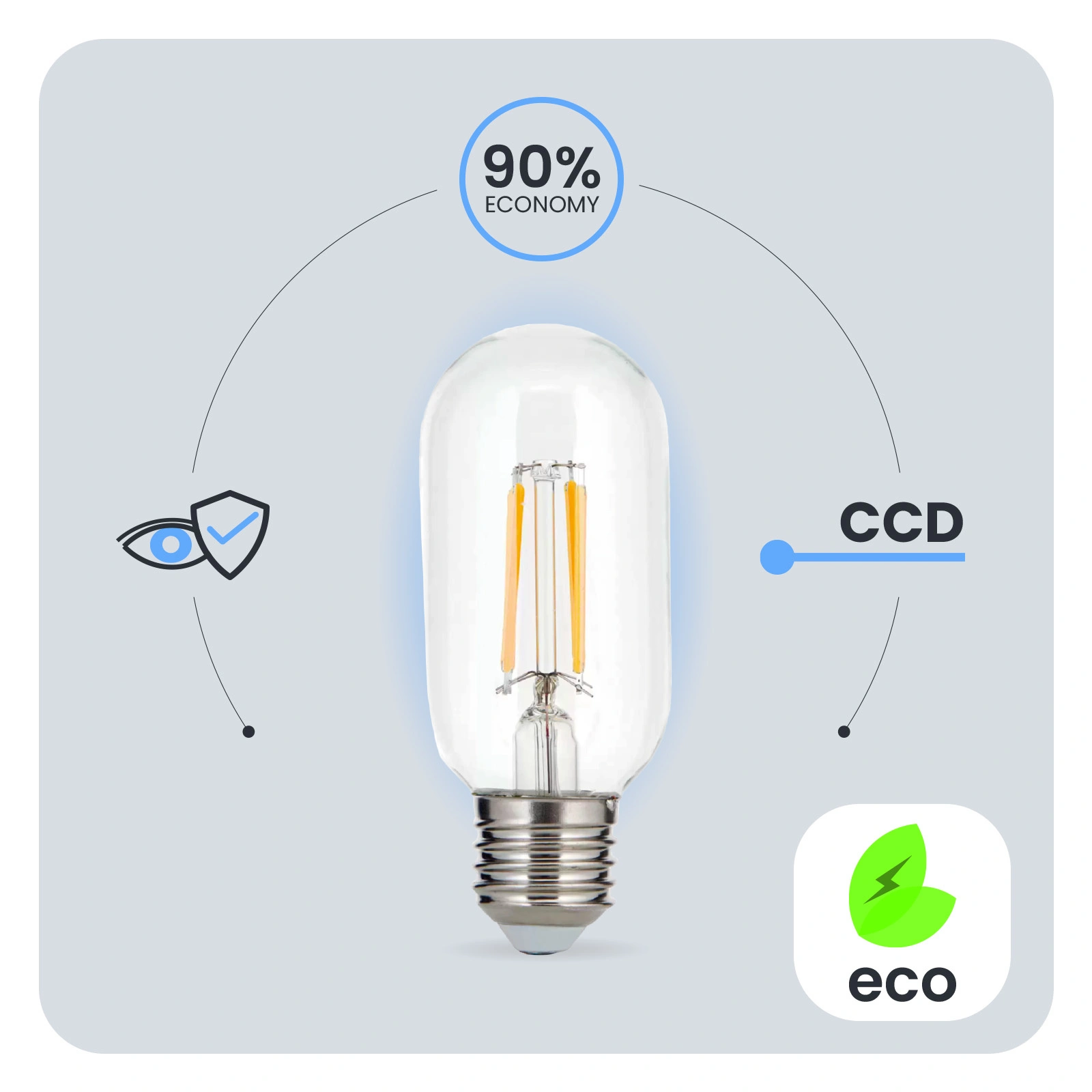 Díky měniči CCD použitému v žárovce LED je žárovka odolná vůči poklesům a špičkám síťového napětí. Světlo nebliká ani se netřese. Díky měniči CCD je žárovka dlouhodobě bezporuchová. Žárovky LUMILED jsou navrženy s ohledem na uživatele. Špatná kvalita osvětlení může vést k únavě očí, proto mají naše žárovky technický vývoj Eye Safe, který zajišťuje pohodlné a šetrné osvětlení pro vaše oči v jakékoli místnosti.