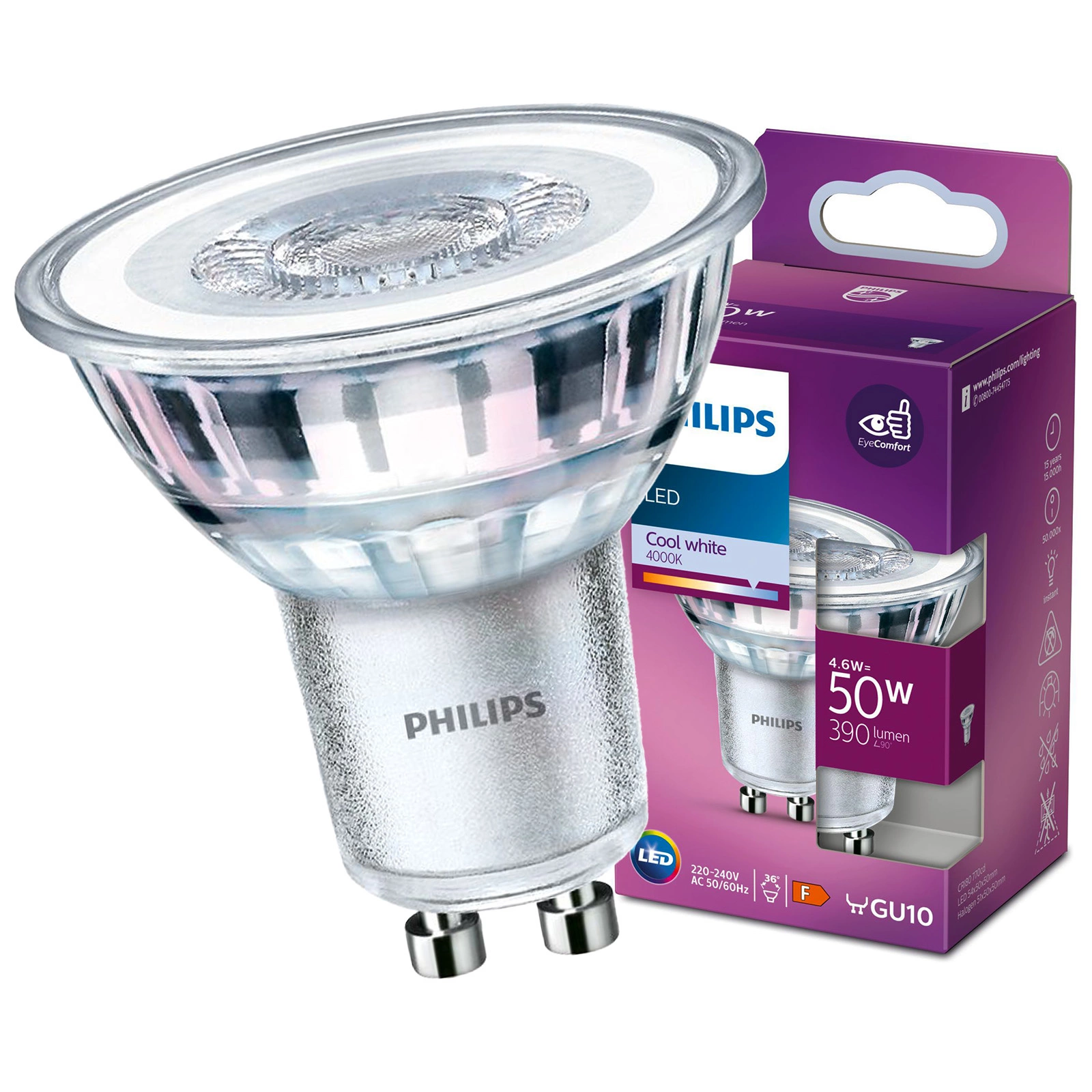 LED žárovka od renomované a v osvětlovacím průmyslu uznávané firmy PHILIPS s paticí GU10 a výkonem 4,6W . Bodové svítidlo je ideální pro akcentační osvětlení a celkové osvětlení. Lze jej namontovat do krabic pod omítku i do svítidel s jinými reflektory. Žárovka je vyrobena pomocí moderních řešení využívajících inovativní LED technologii, která se vyznačují vysokou účinností světelných parametrů, věrnou reprodukcí barev osvětlovaných předmětů a výjimečně dlouhou životností .