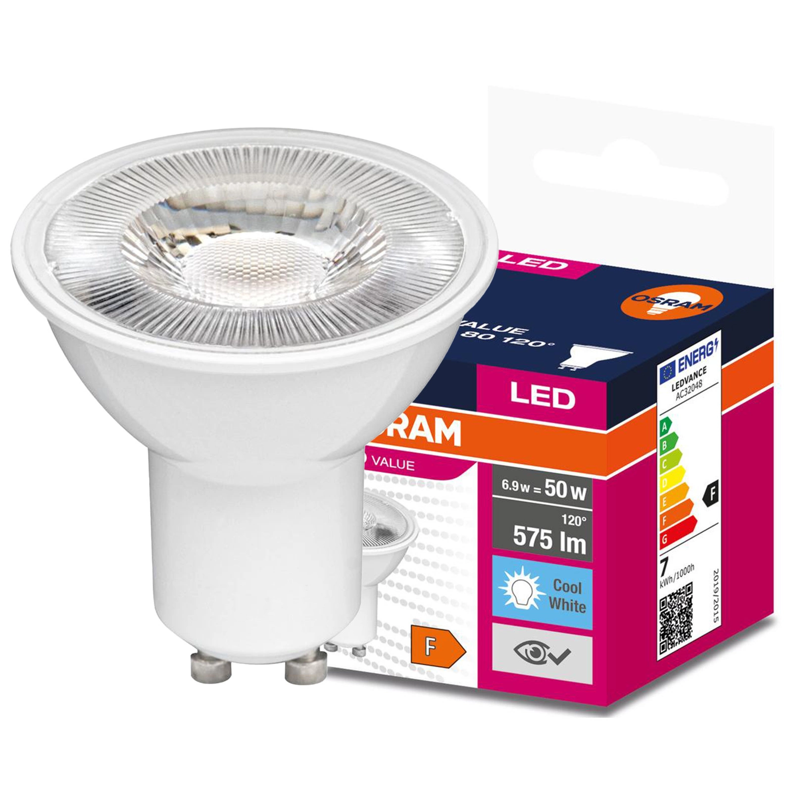 Nejnovější HALOGENOVÁ ŽÁROVKA OSRAM z řady VALUE16 s paticí GU10 o výkonu 6,9W ( odpovídá 50W ). LED REFLECTOR vyzařuje neutrální barvu světla 4000K se světelným tokem 575lm Halogenová LED žárovka je osvětlení s širokým vyzařovacím úhlem 120° , které v kombinaci se zapuštěnými a přisazenými svítidly s paticí GU10 krásně osvětlí naše interiéry. OSRAM s využitím inovativní LED TECHNOLOGIE zaručuje velmi vysokou kvalitu a účinnost světla i věrnou reprodukci barev se sníženou spotřebou energie až o 90 % ve srovnání s tradičními světelnými zdroji. HALOGEN LED je energeticky úsporná náhrada tradičních reflektorů a díky použití stejné základny je výměna velmi jednoduchá. Když se rozhodneme zakoupit prezentovanou žárovku, máme jistotu, že obdržíme vysoce kvalitní výrobek, který nám zajistí velmi dlouhou dobu používání