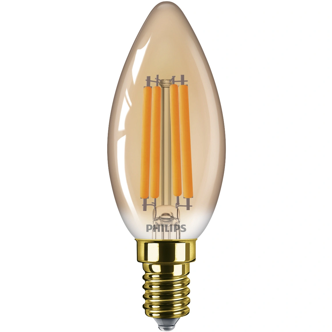LED žárovka na svíčku E14 B35 6W = 40W 470lm 1800K Teplá bílá vlákno jantarové PHILIPS