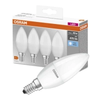 4x LED žárovka E14 B35 5.5W = 40W 470lm 4000K Neutrální bila OSRAM Základna