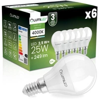 6x Žárovka LED E14, P40 2.5W = 25W 249lm 4000K Neutrální bílá 180° LUMILED