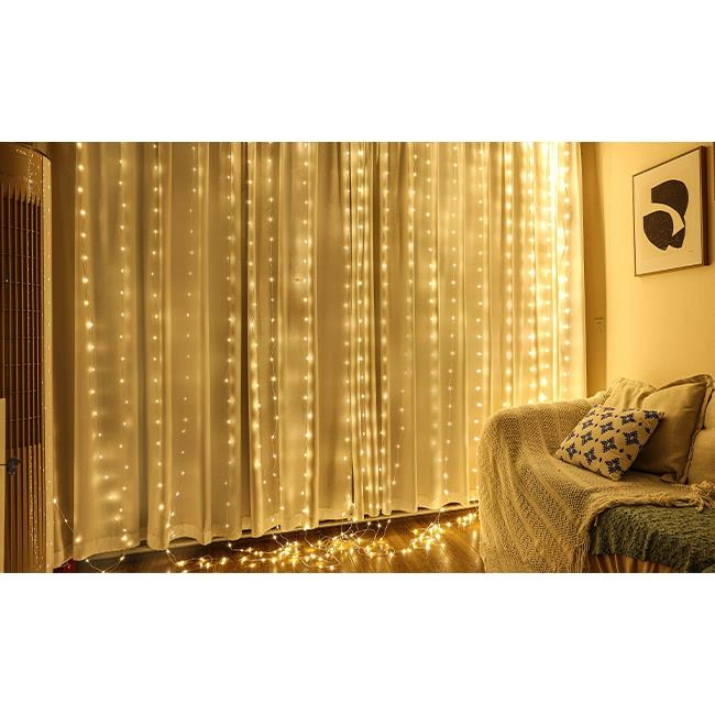 Záclona LED jedná se o zajímavou vánoční dekoraci, která skvěle zapadne do sváteční atmosféry. Vyzařuje bílé teplé světlo 2700K. Ovládání pomocí dálkového ovladače nebo tlačítka na ovladači. Má 8 světelných režimů: